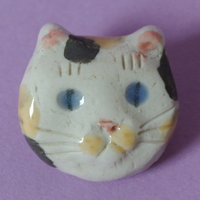 a little more DO CATS! okapi pottery 陶ブローチネコ丸顔小 okp-8-5 三毛
