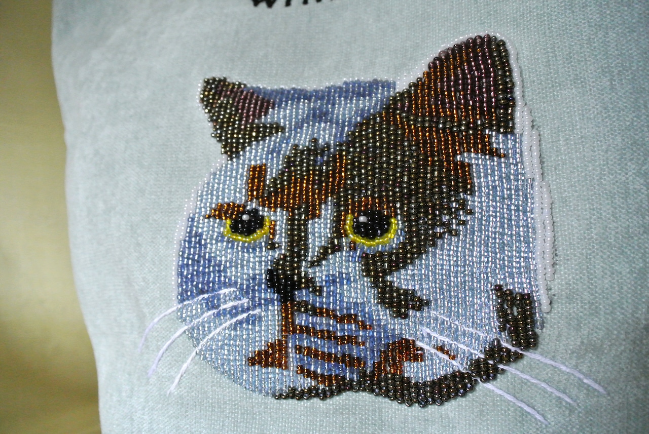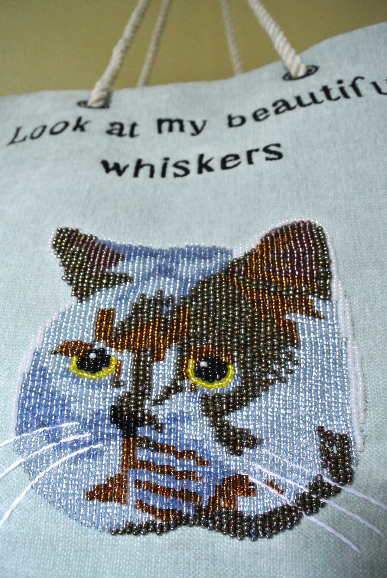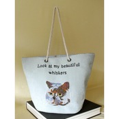 Beaded Cat Tote Bag, Gray, BlueGrey