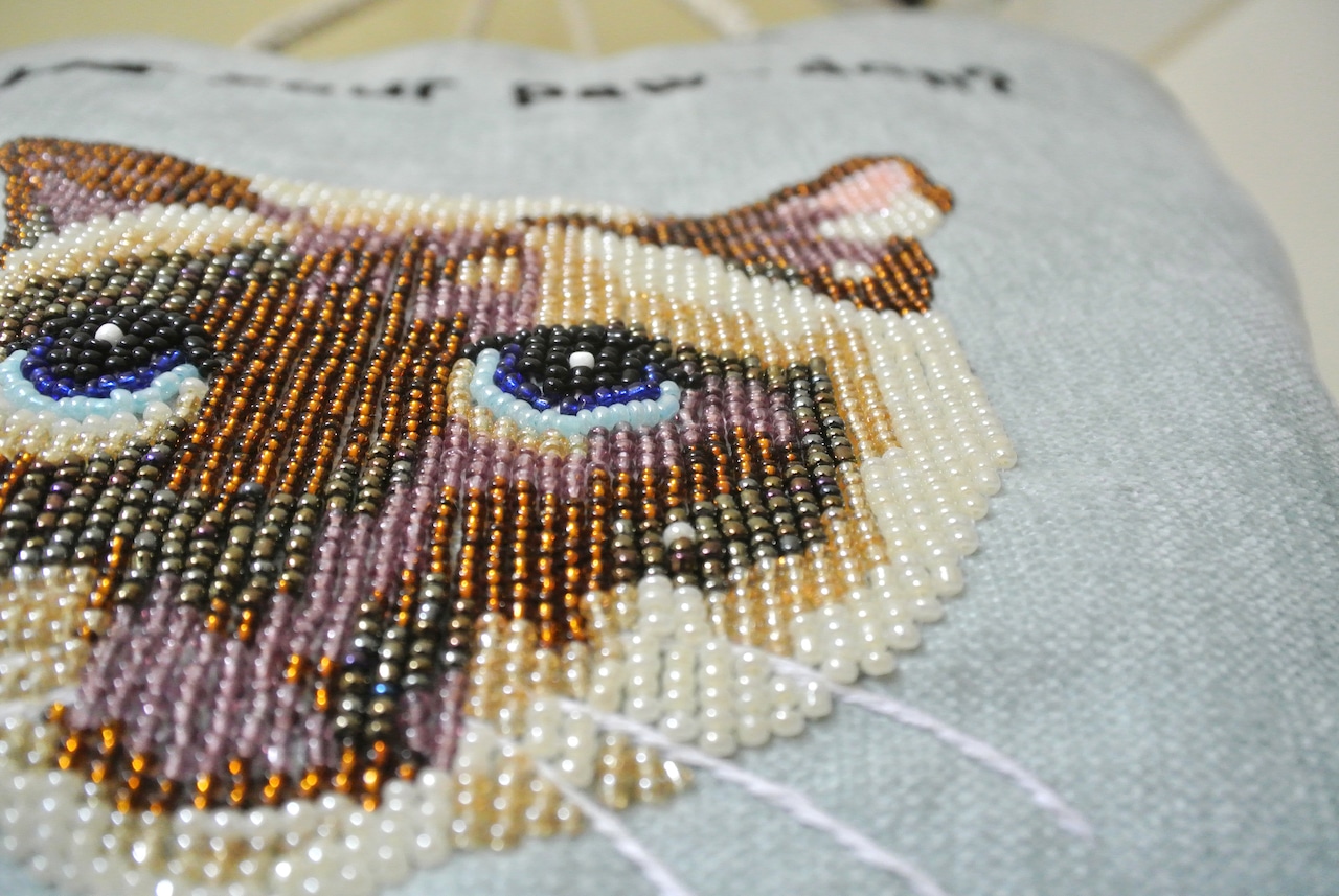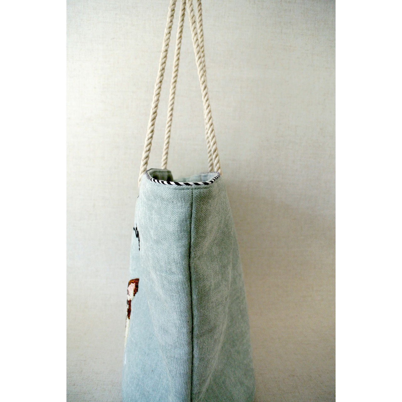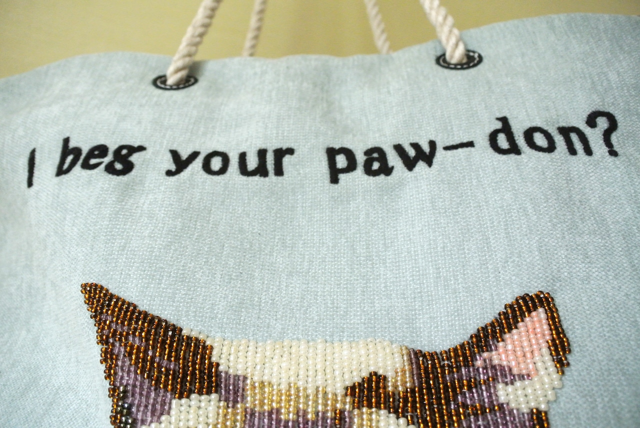 Beaded Cat Tote Bag, Siam, Blue Grey