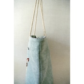 バッグ本体は起毛した生地を使用しております。芯地を入れずにバッグに仕立てているため、ふんわりと柔らかく、とても軽いのが特徴です。