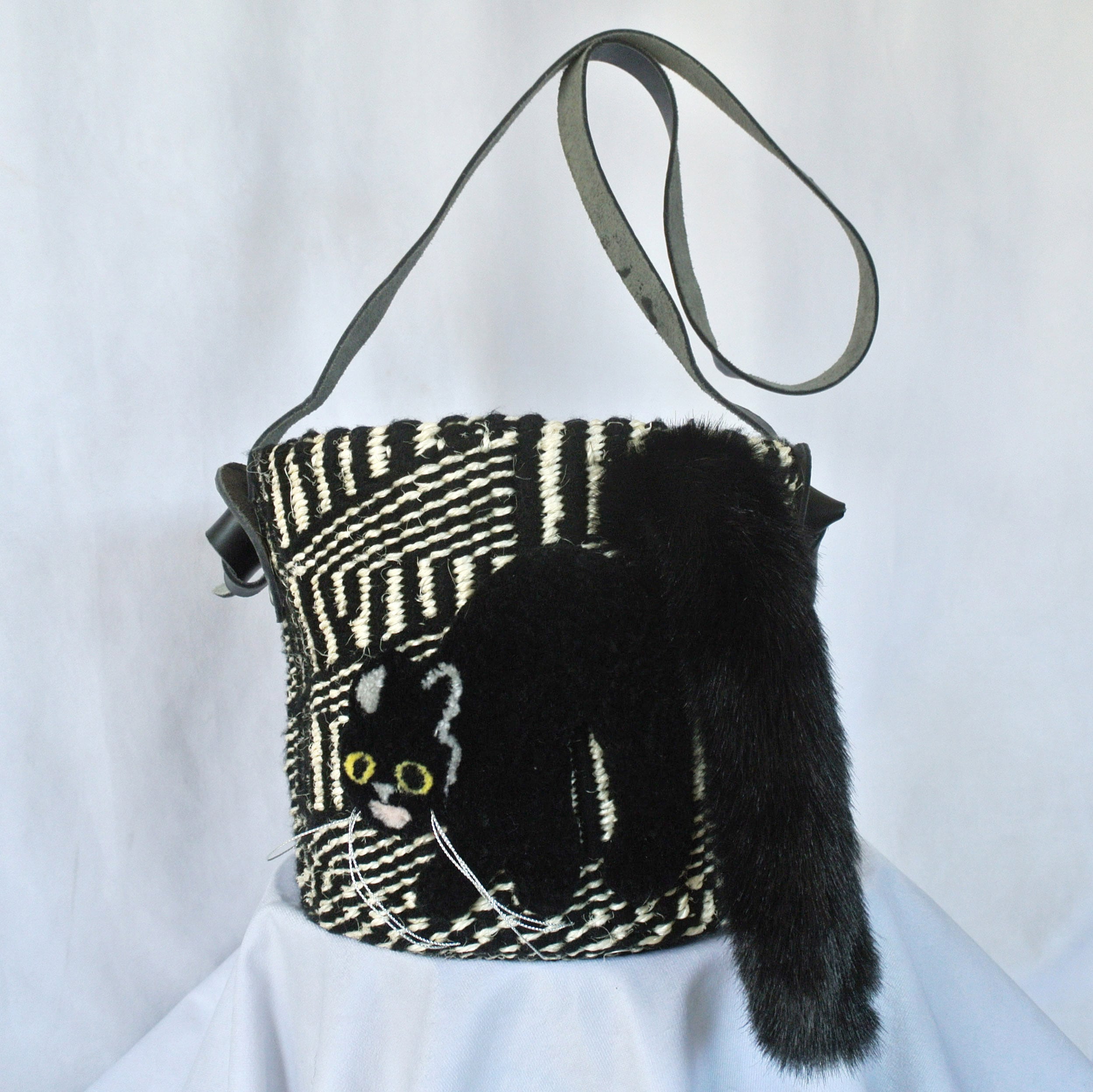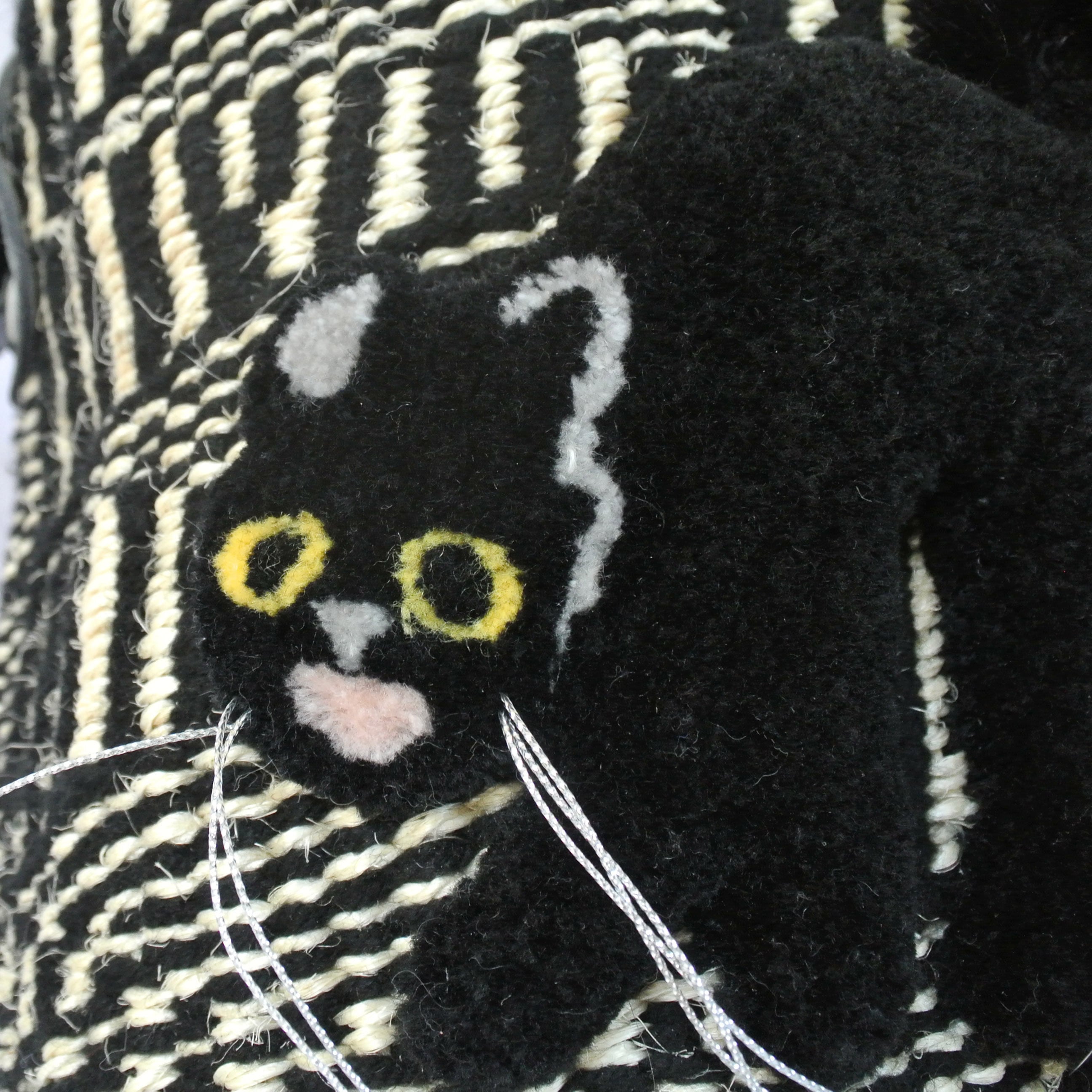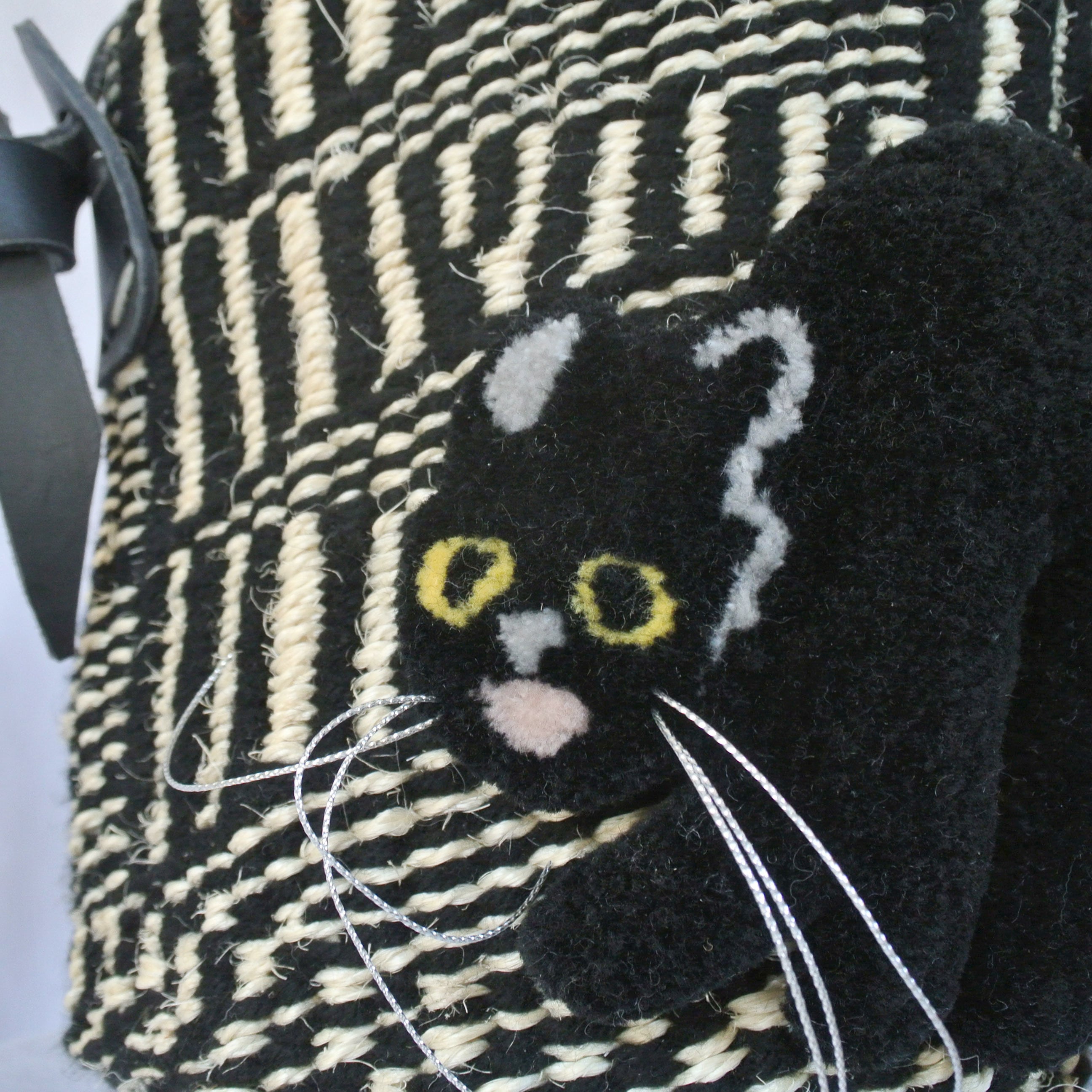 素材: ボディ:サイザル麻xアクリル糸、ショルダー:レザー 、シッポ部分 アクリル/ナイロン、猫刺繍部分 アクリル/ウール