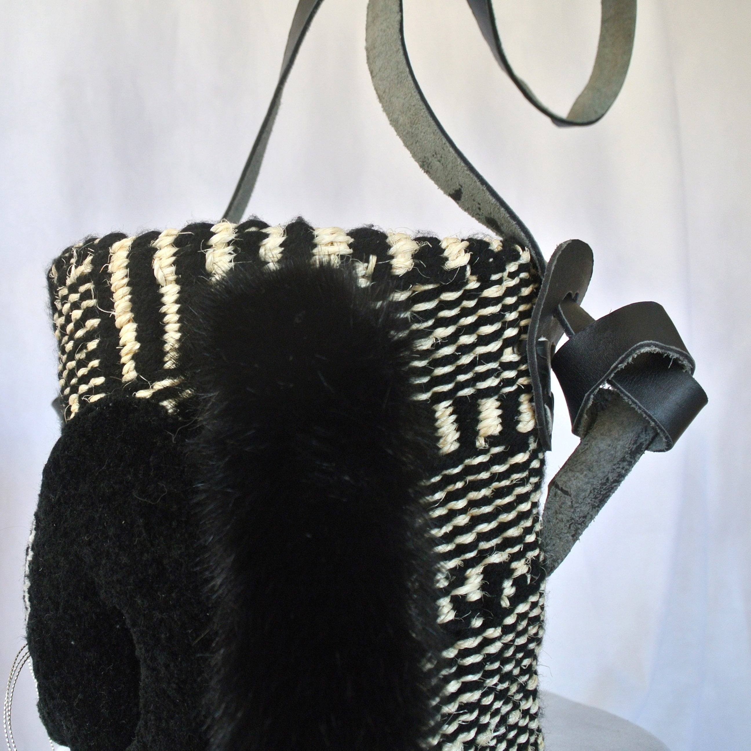モコモコねこカゴバッグ サイザル×アクリル ショルダーVer. ブラック