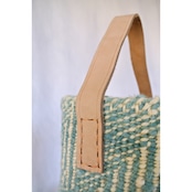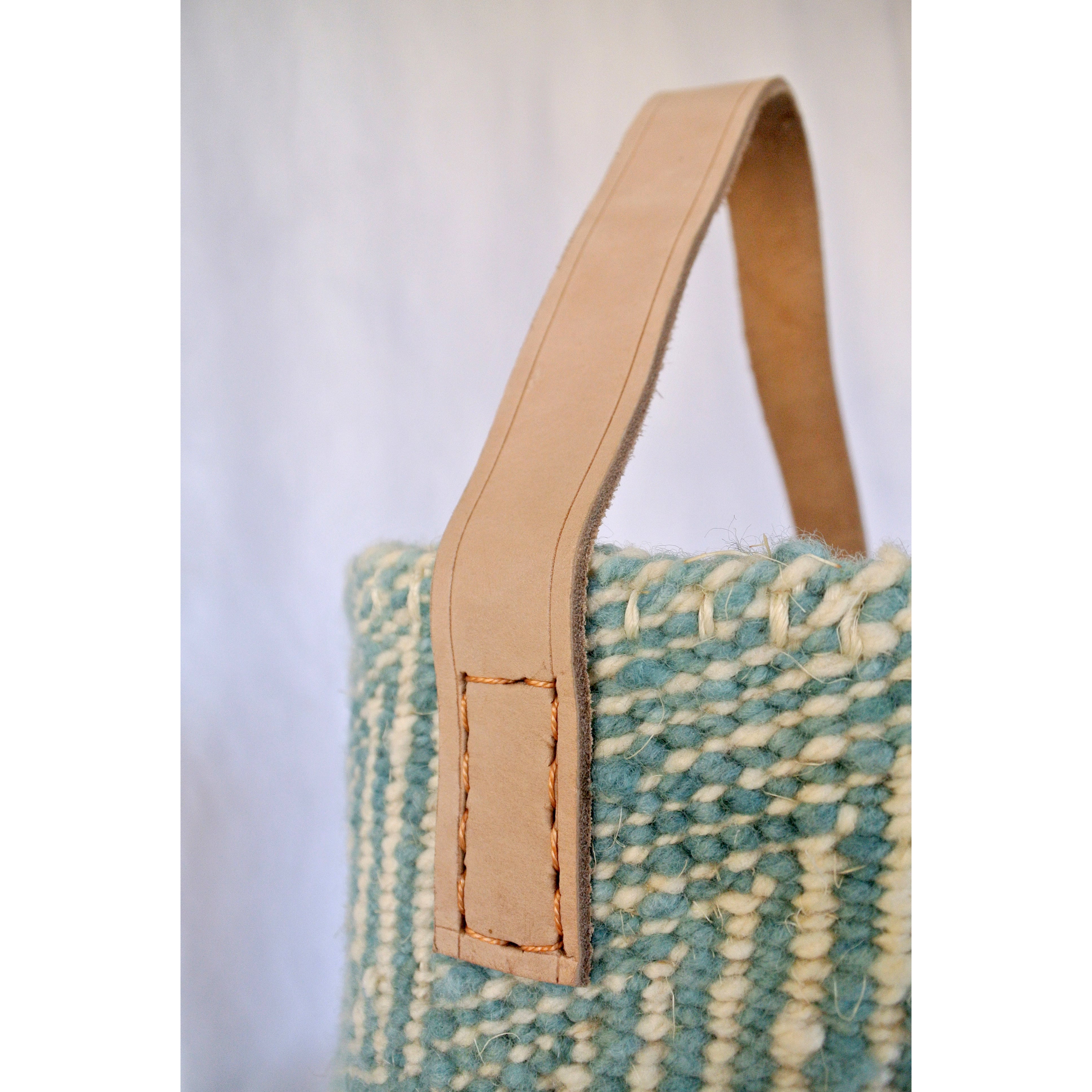 サイザル麻とアクリル毛糸で編まれたかごバッグを使用しています。