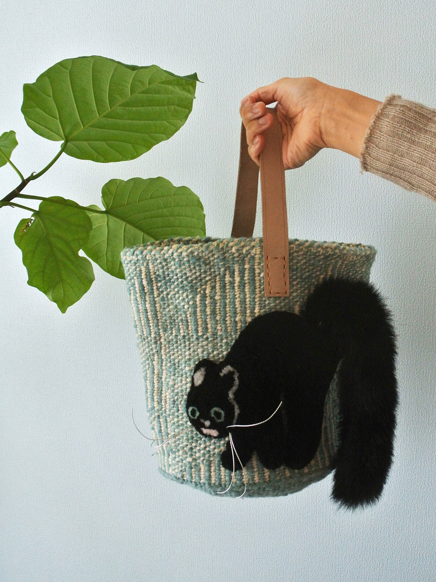 毛糸でモコモコに刺繍した猫ちゃんと、ふわふわロングなシッポがポイントのかごバッグです。小さめで持ちやすいサイズのカゴバッグです。
