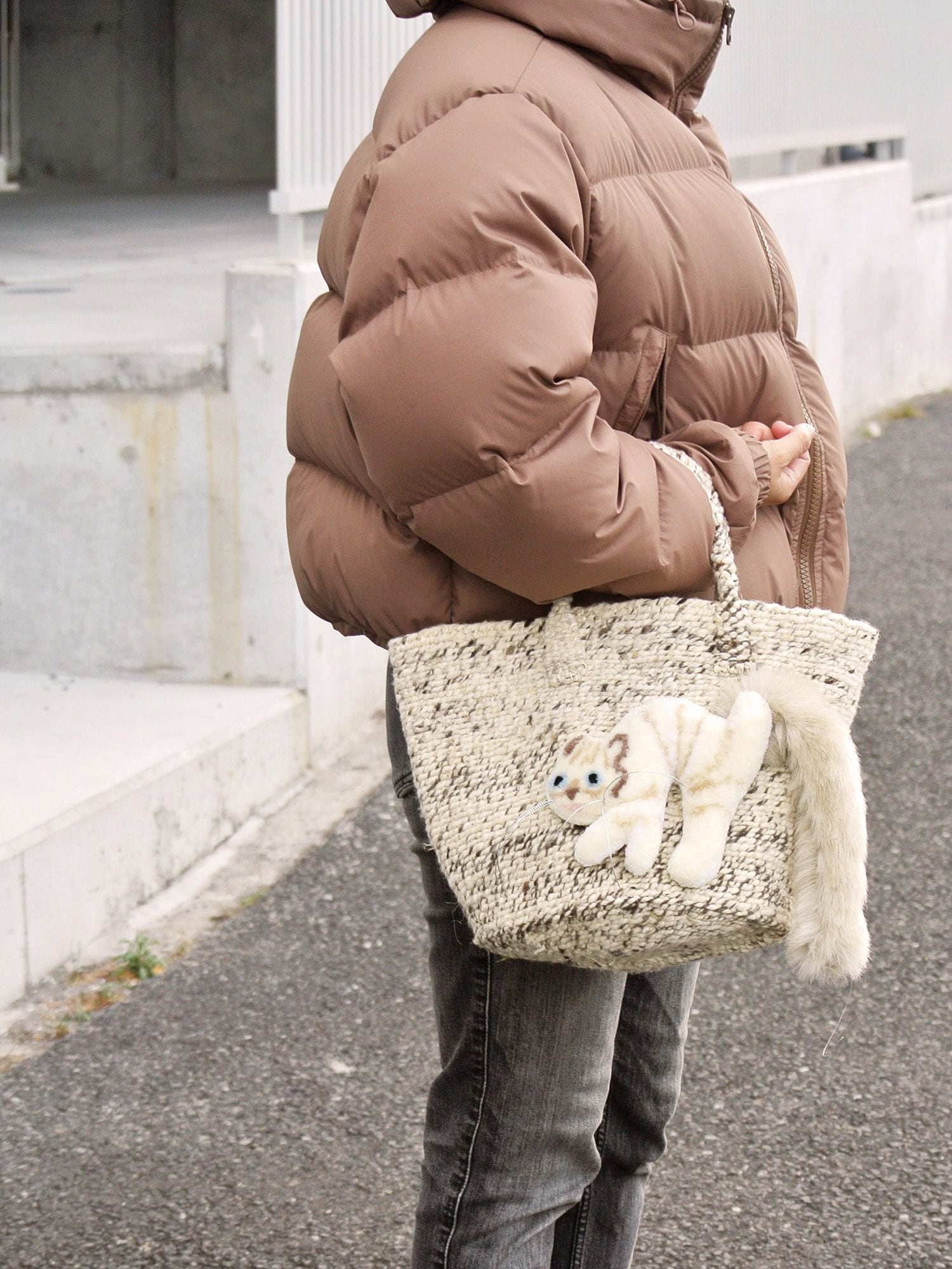 モコモコねこカゴバッグ サイザル/ウールver 茶白シマ