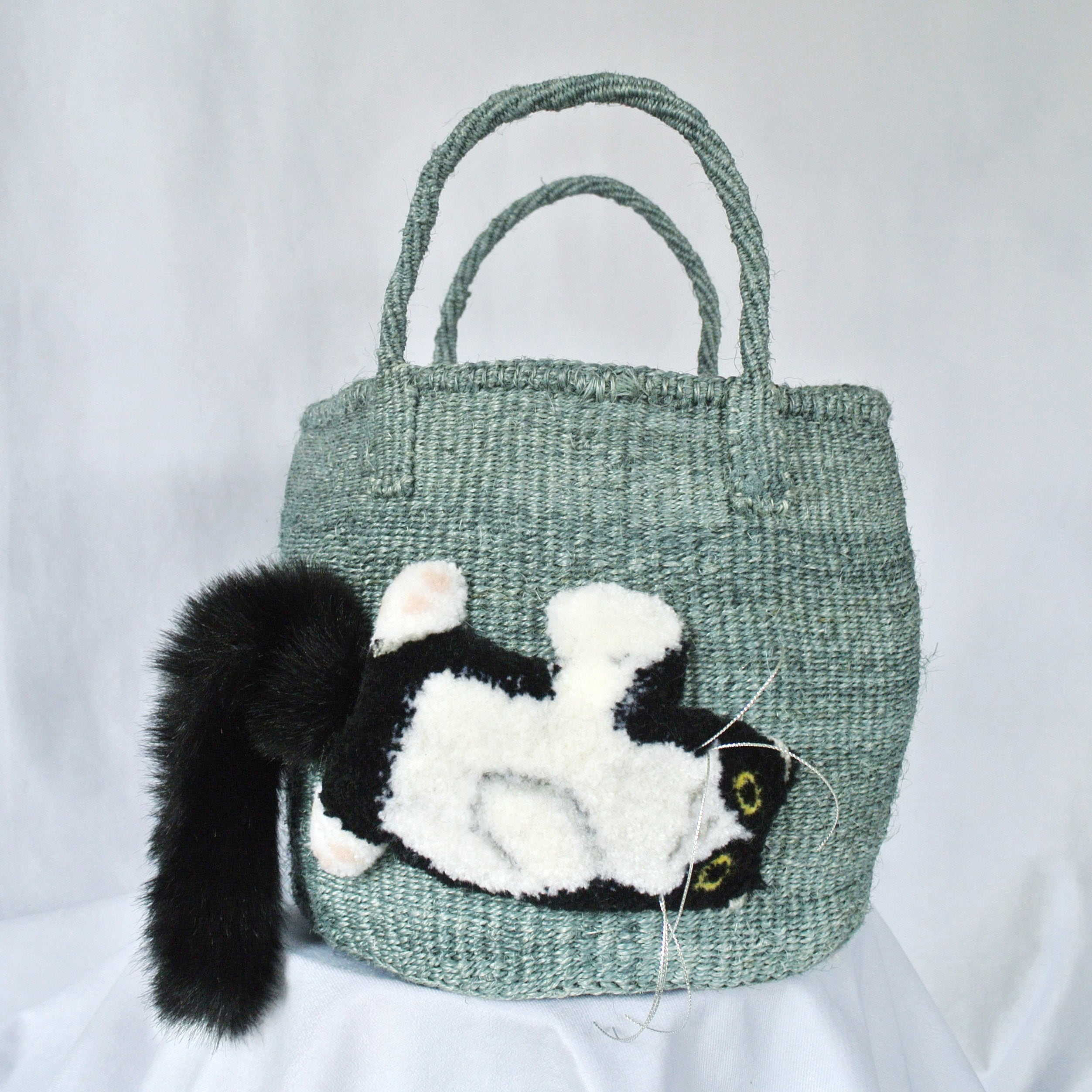 素材: ボディ:サイザル麻、猫刺繍部分 アクリル/ウール、シッポ部分 アクリル/ナイロン