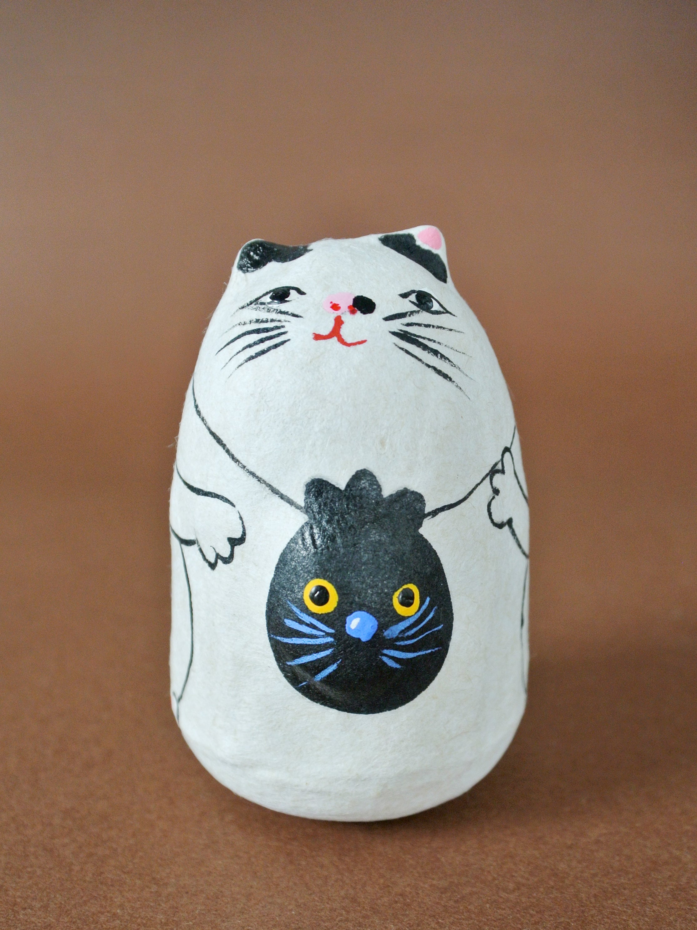この起き上がり小法師は、裏張りの技法によって岩手県で製作している張り子玩具です。