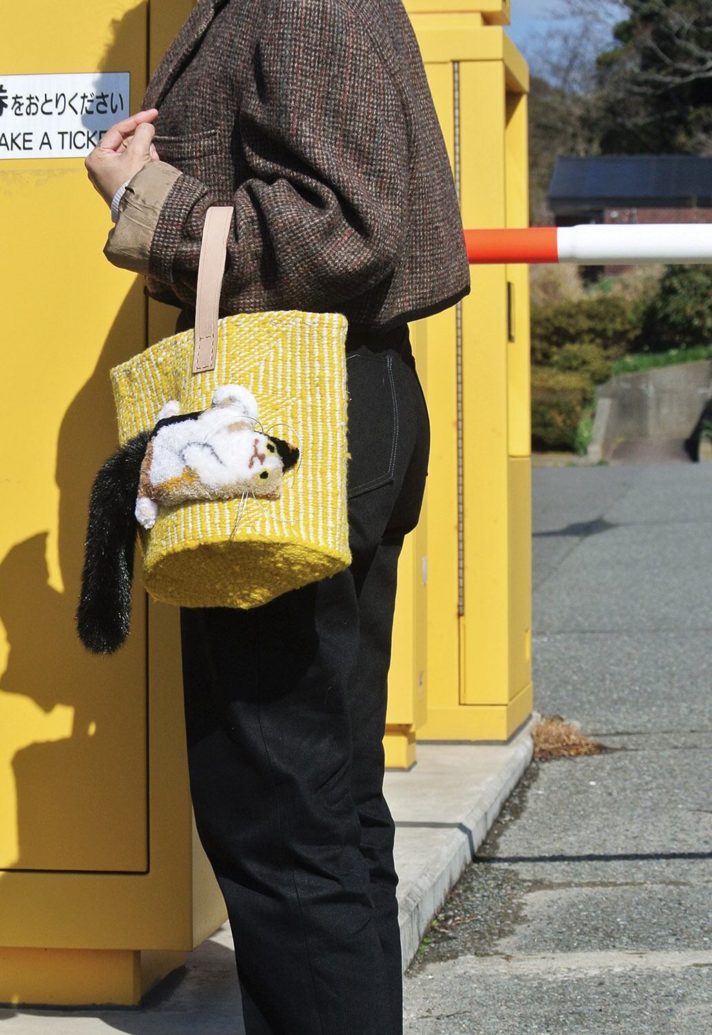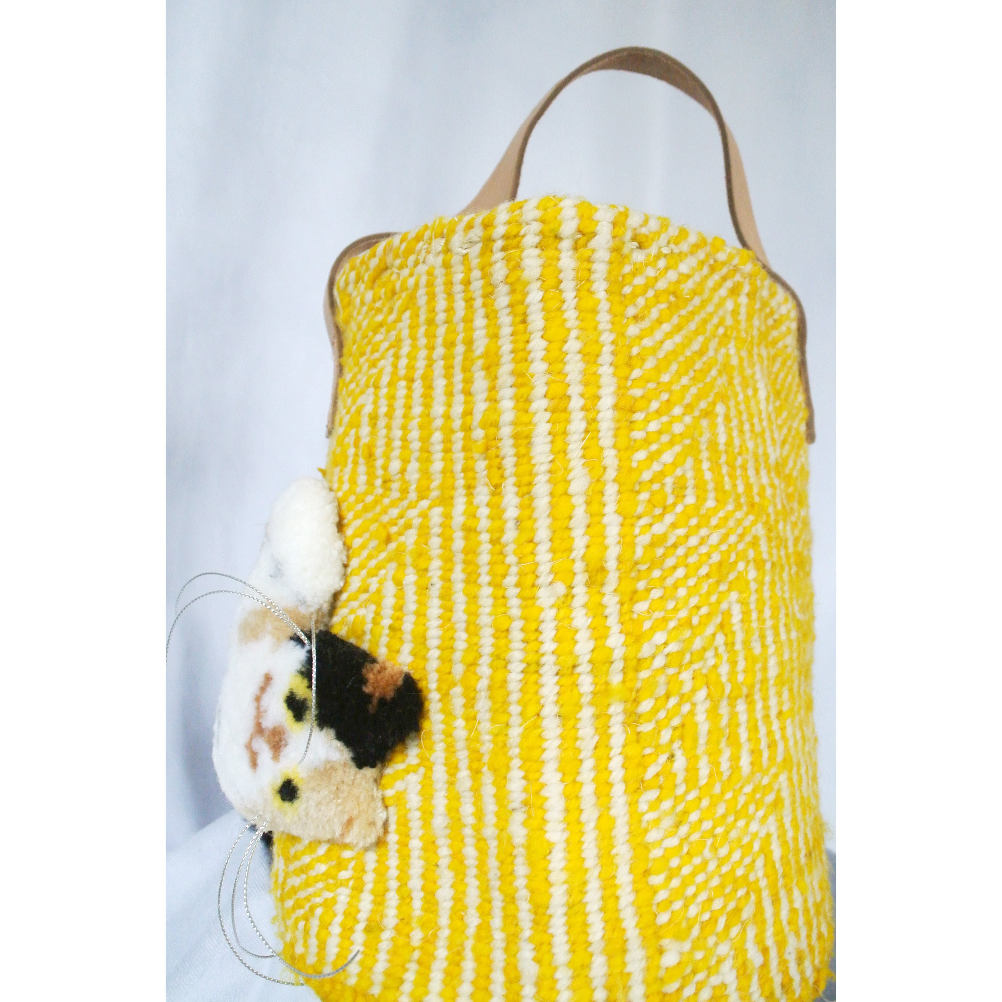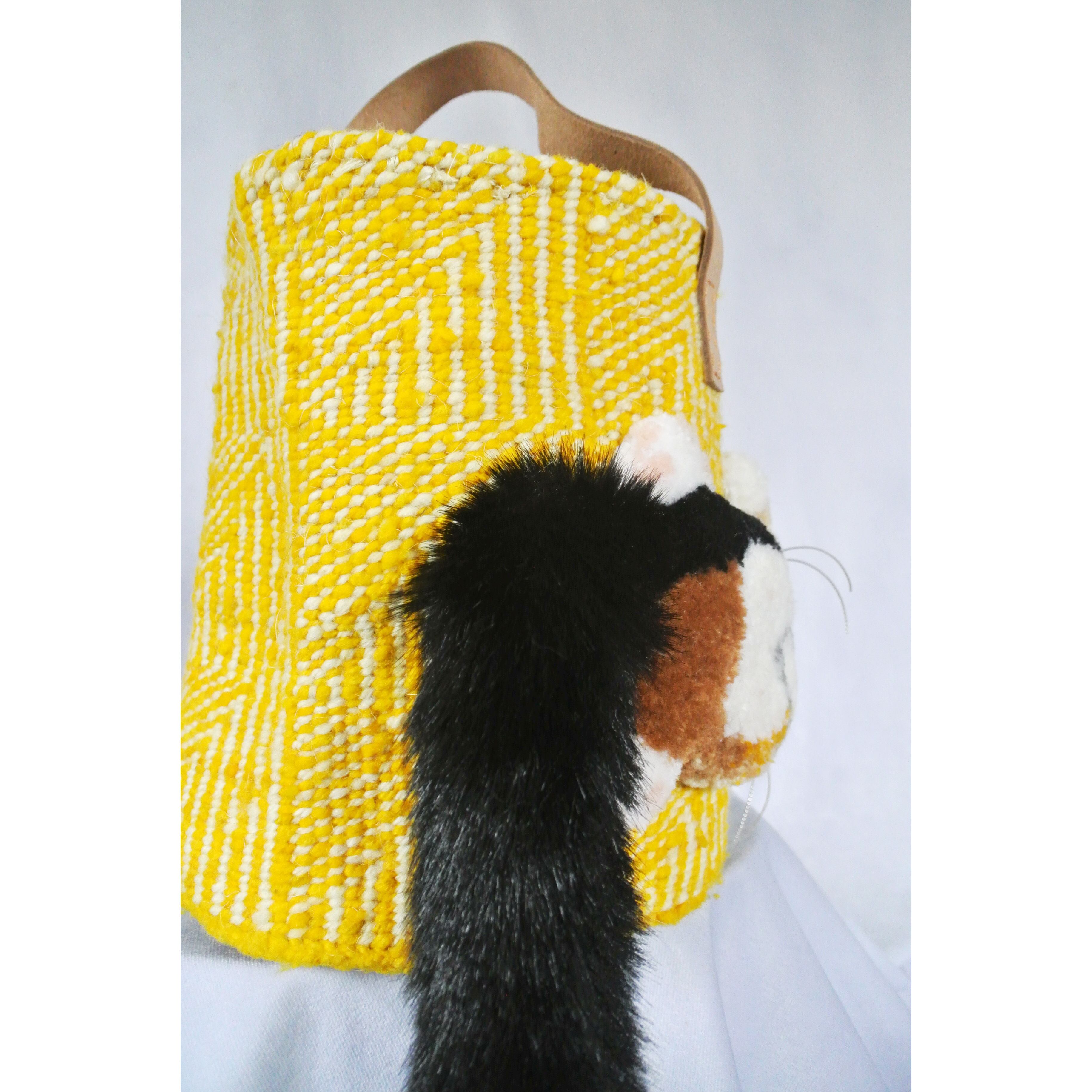 素材: ボディ:サイザル麻/ウール、ハンドル:革、猫刺繍部分:アクリル/ウール、シッポ部分:アクリル/ナイロン