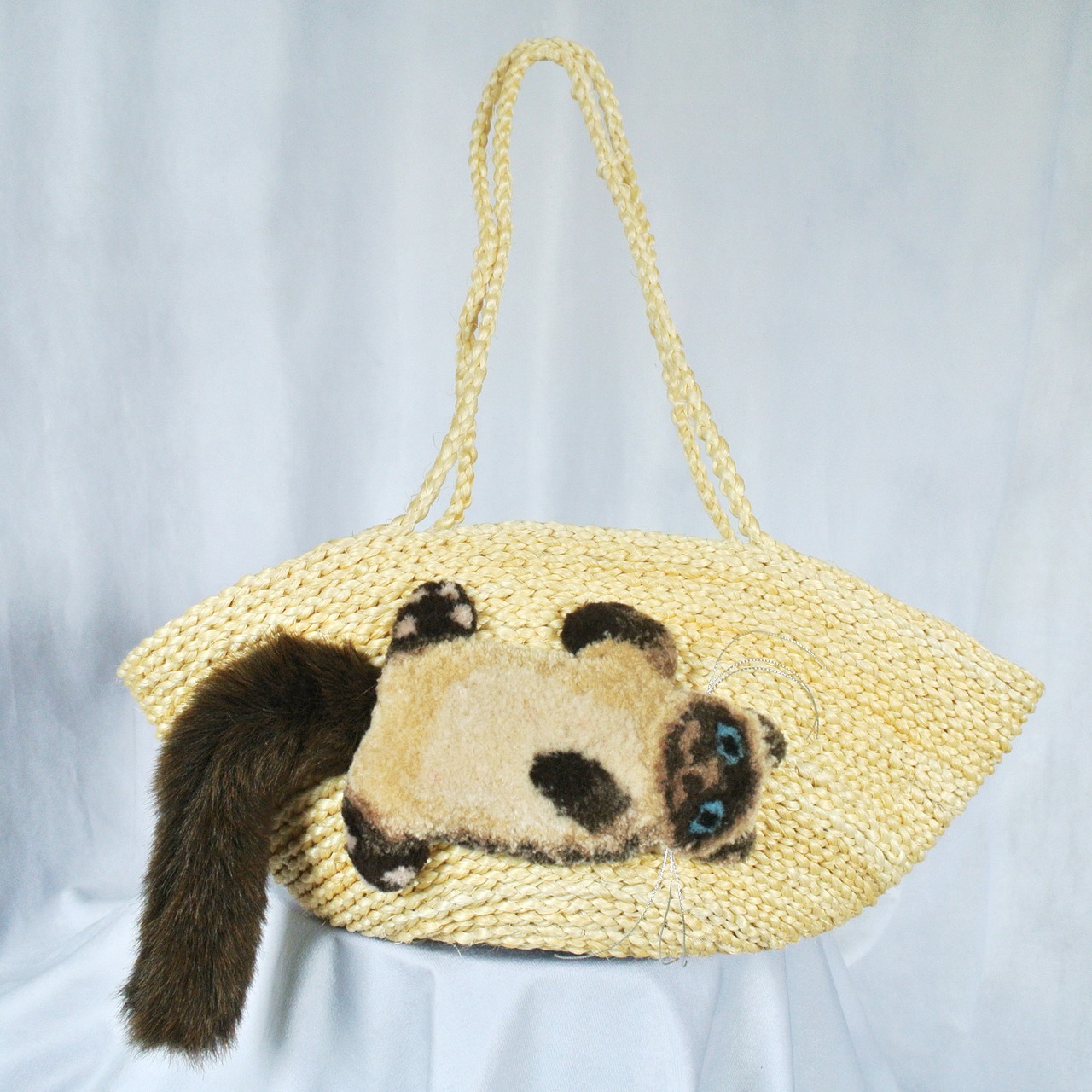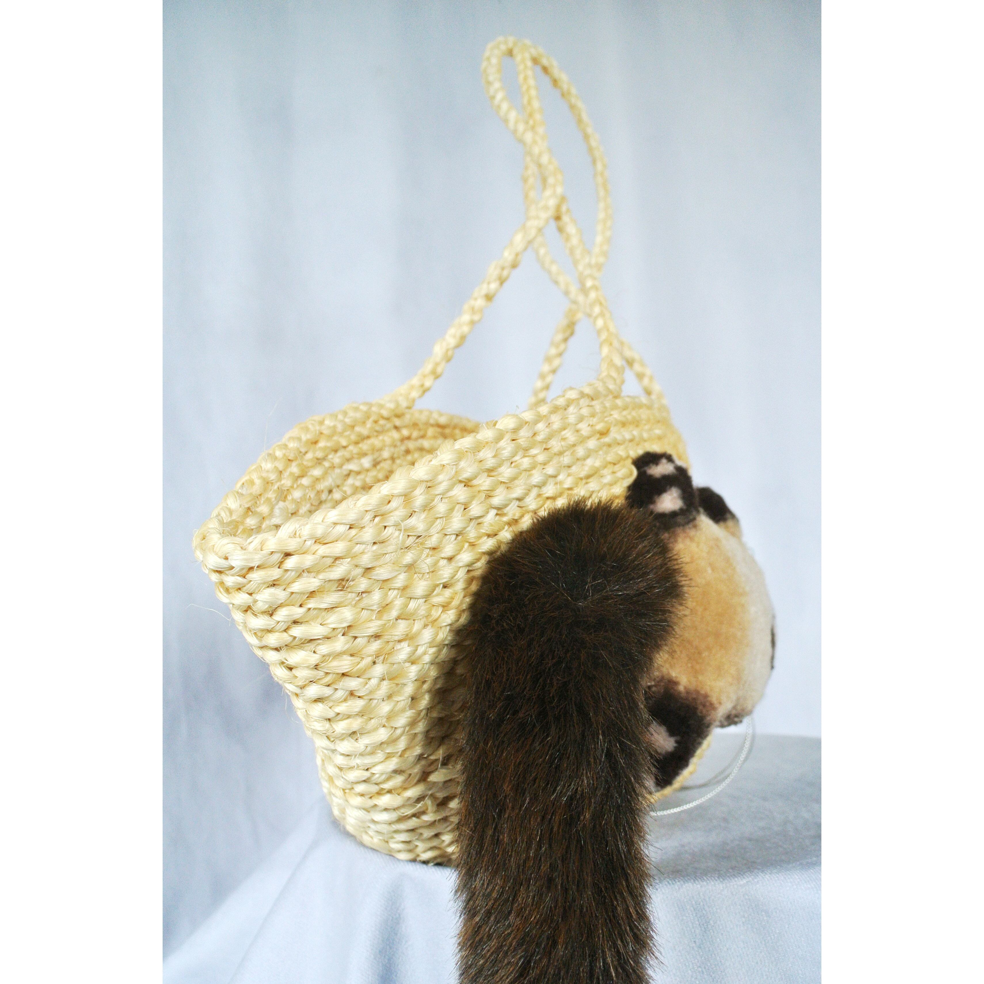 素材: ボディ:サイザル麻、猫刺繍部分 アクリル/ウール、シッポ部分 アクリル/ナイロン