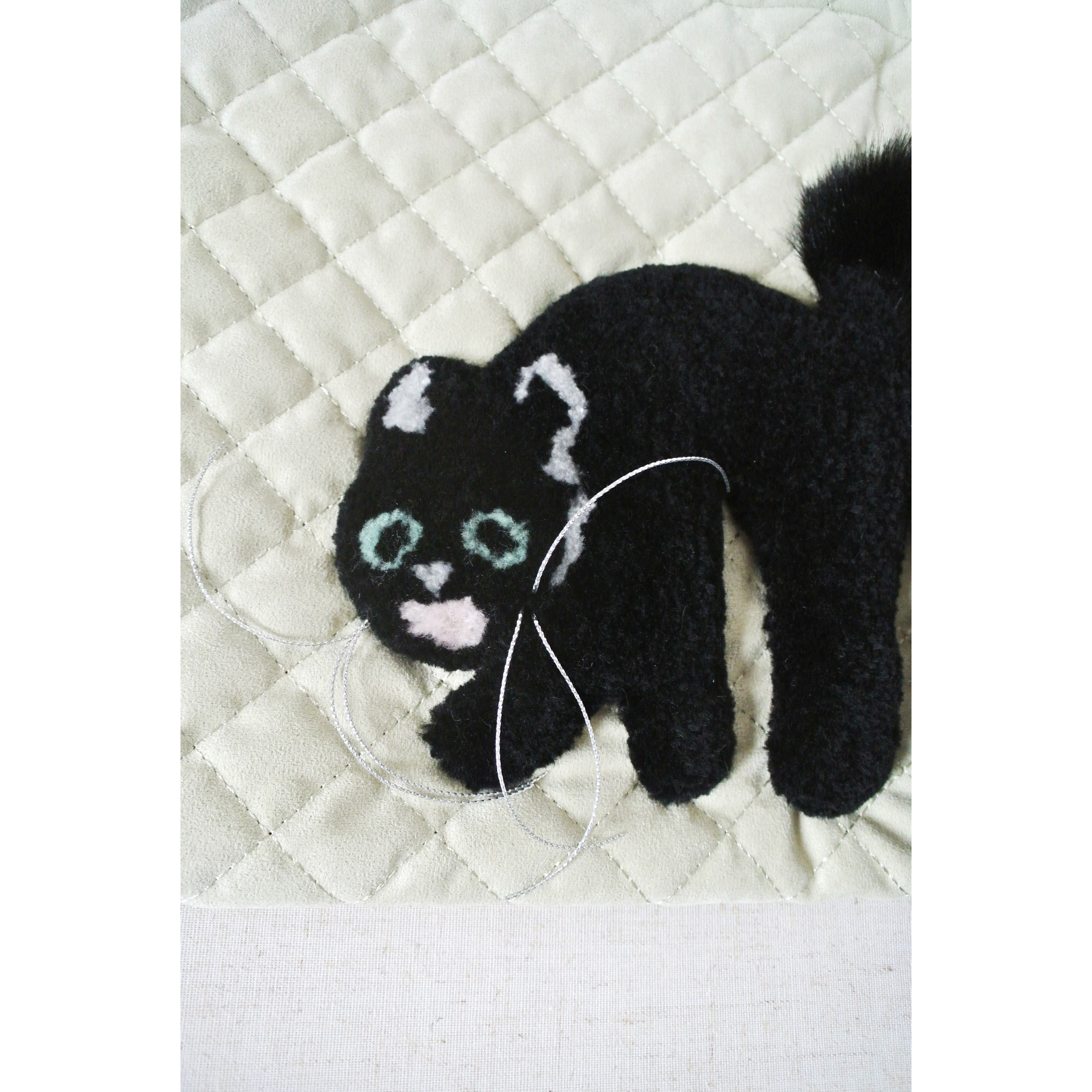 猫のモコモコ刺繍部分は、ラグを作る要領で職人がハンドメイドで仕上げているため、一つ一つ表情が異なります。ご了承ください。