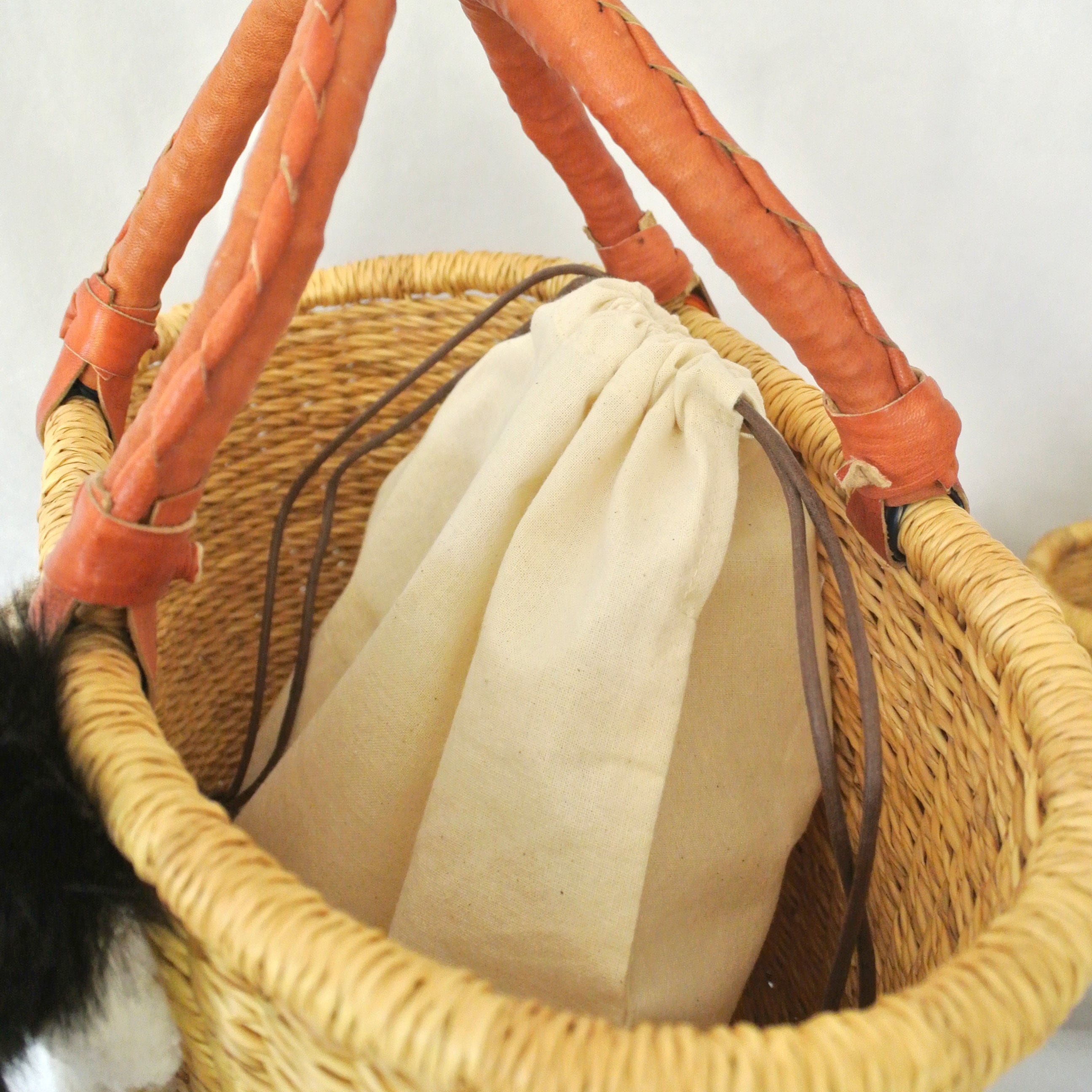 内袋として使える巾着がセットになっています。巾着:コットン