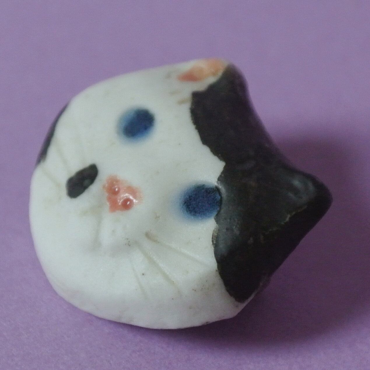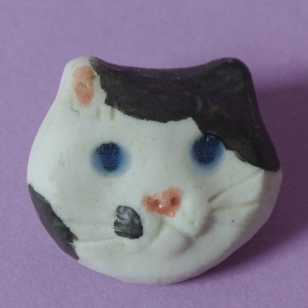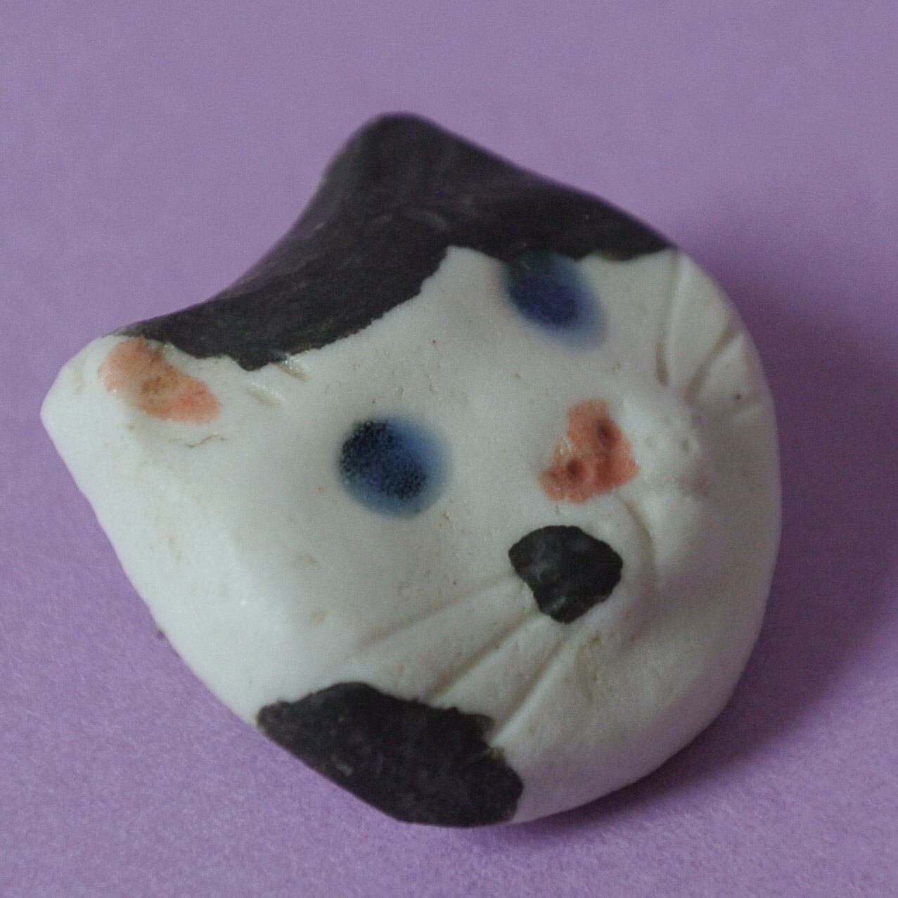 okapi potteryさんの陶器製の丸顔ネコちゃんブローチです。