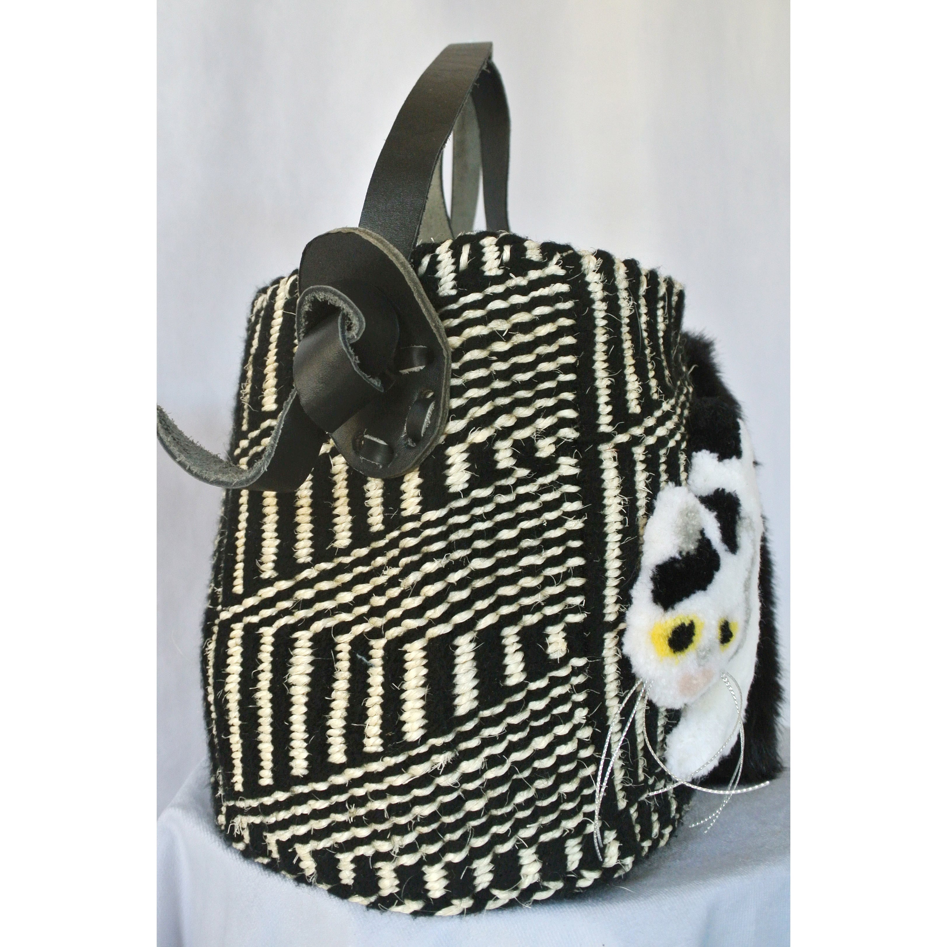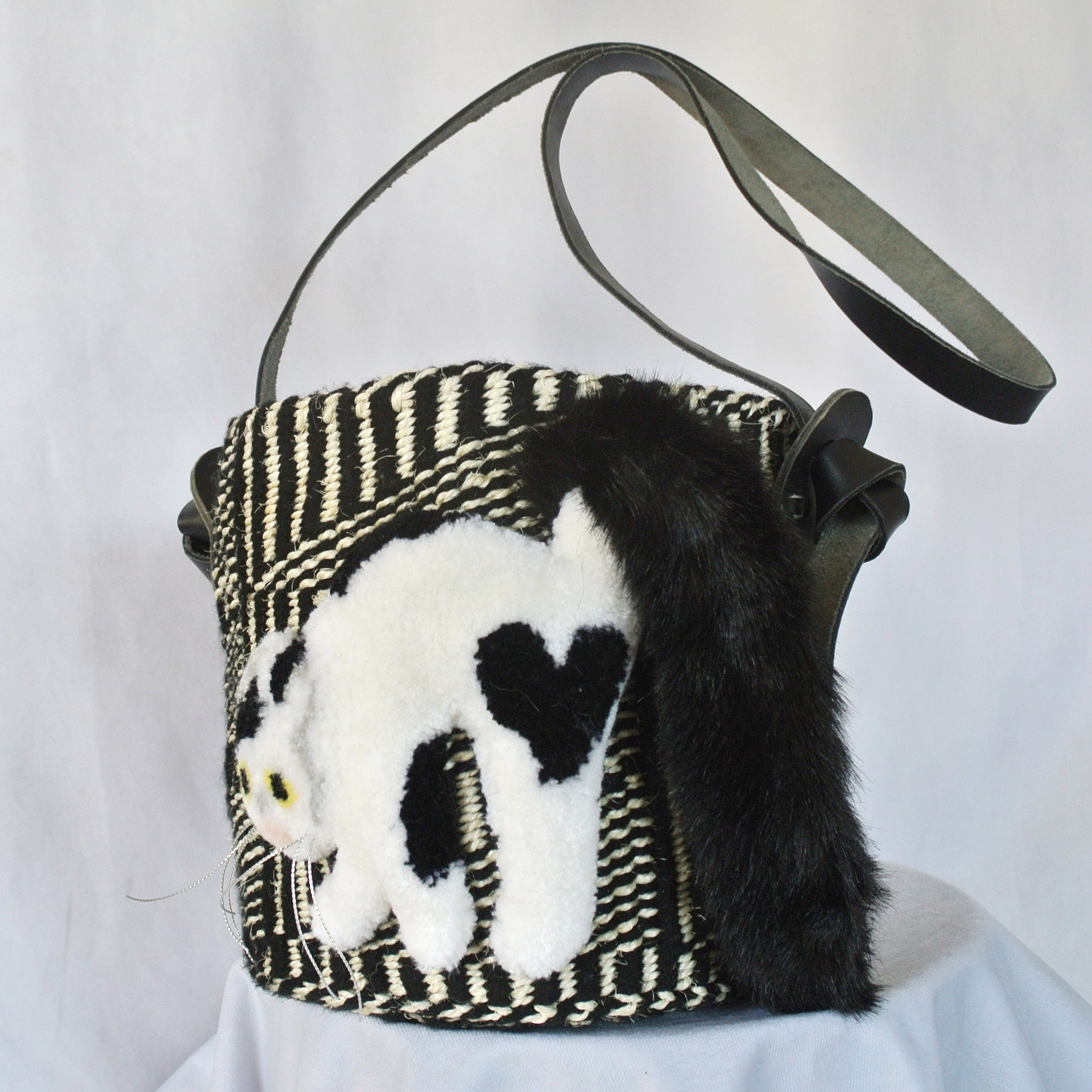 素材: ボディ:サイザル麻xアクリル糸、ショルダー:レザー 、シッポ部分 アクリル/ナイロン、猫刺繍部分 アクリル/ウール
