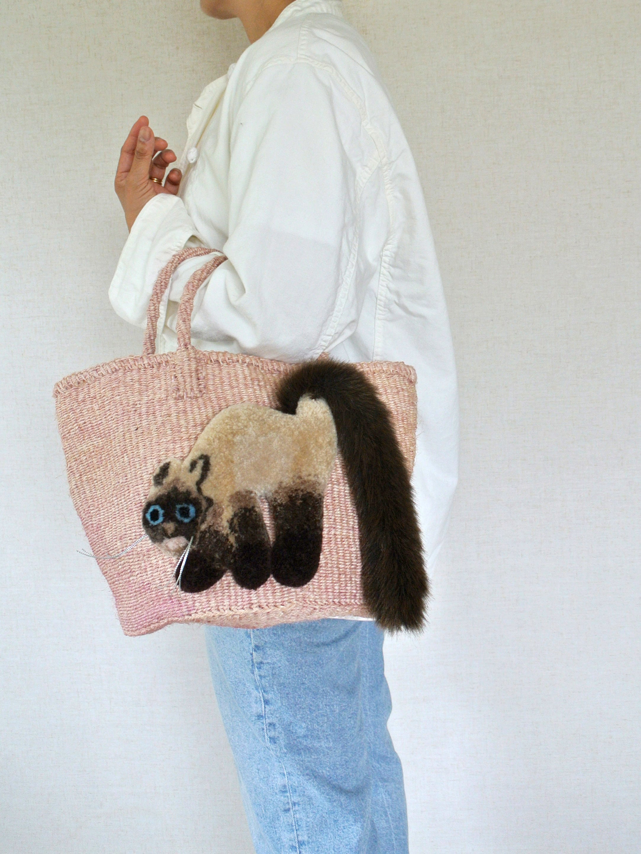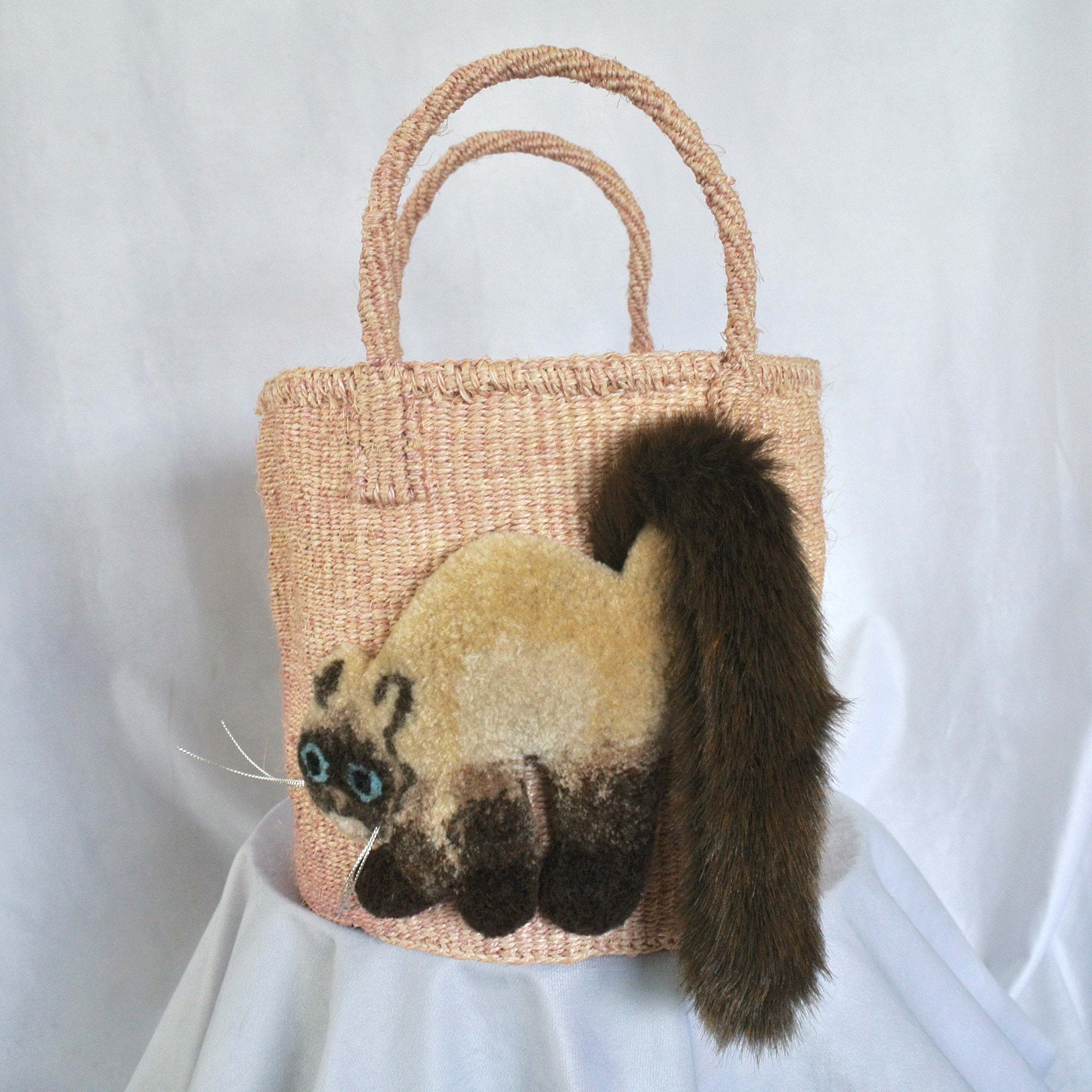 Fluffy Cat Basket Bag – Sisal Version (Siamese)