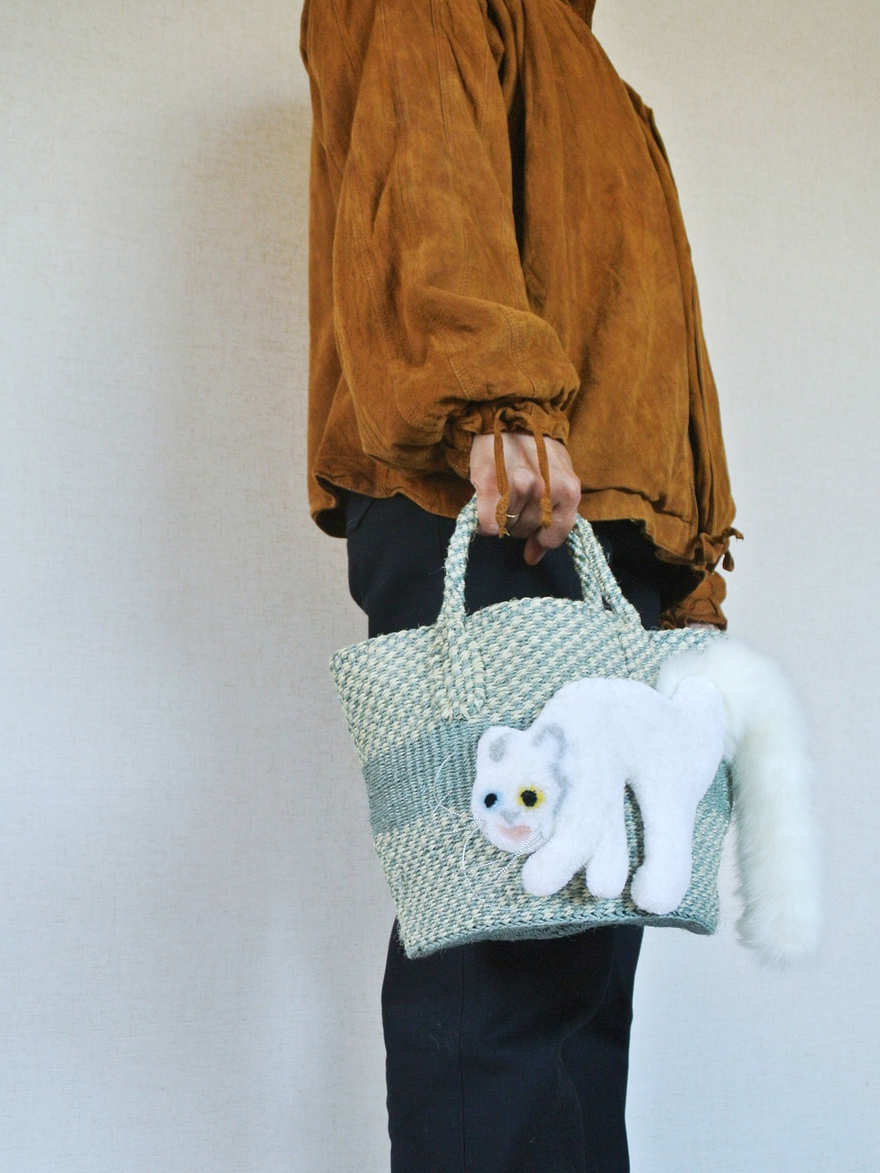モコモコねこカゴバッグ サイザルVer. ホワイト