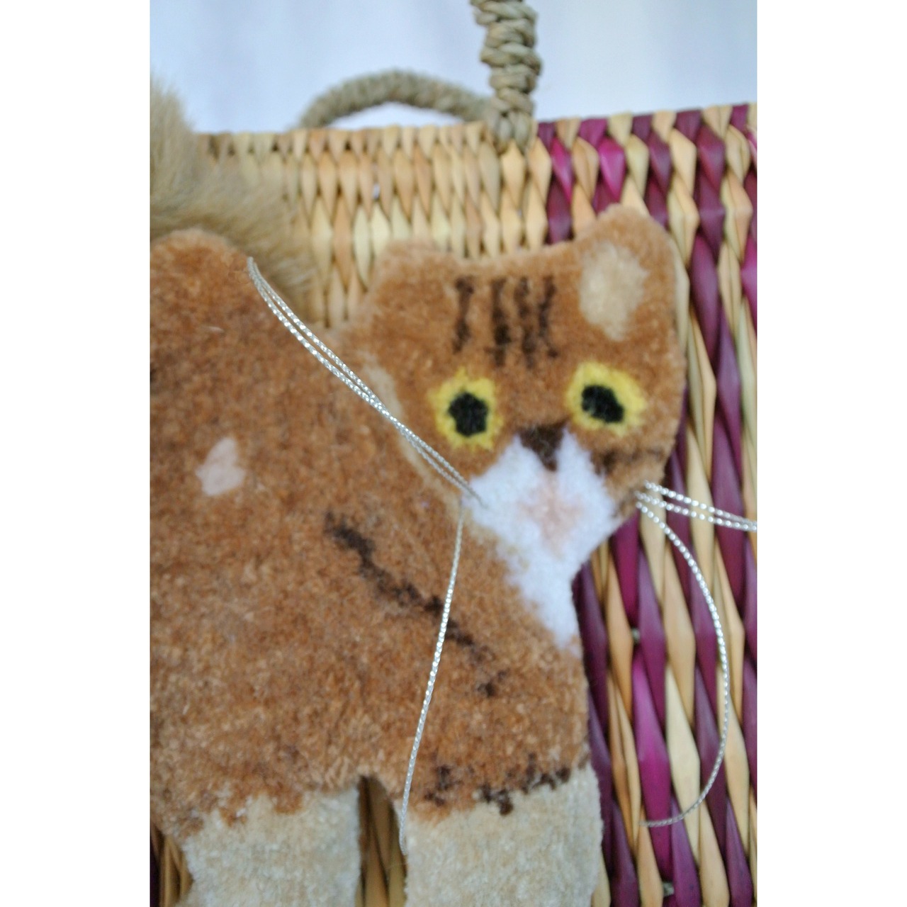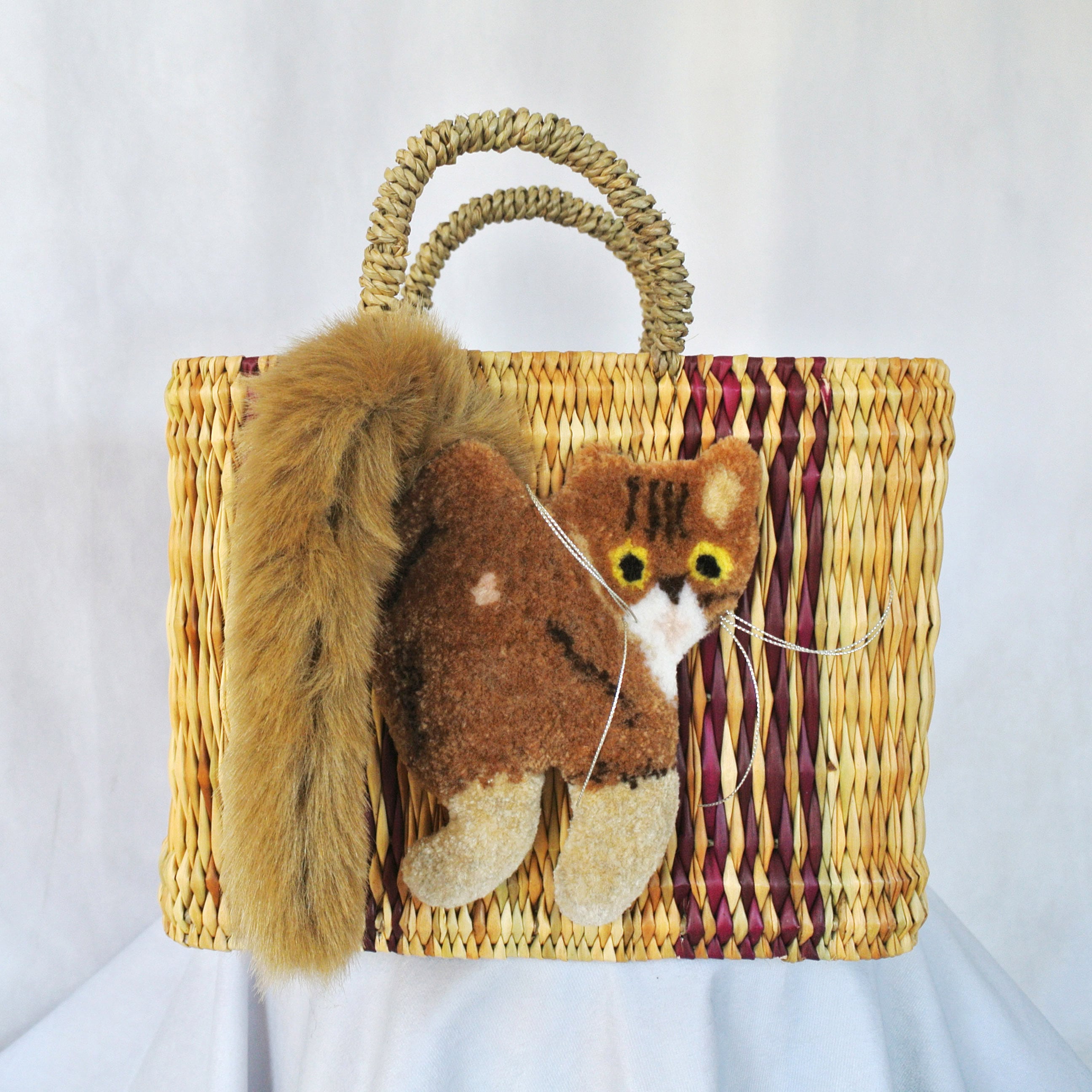素材: 水草(エレファントグラス) 、シッポ部分 アクリル/ナイロン、猫刺繍部分 アクリル/ウール