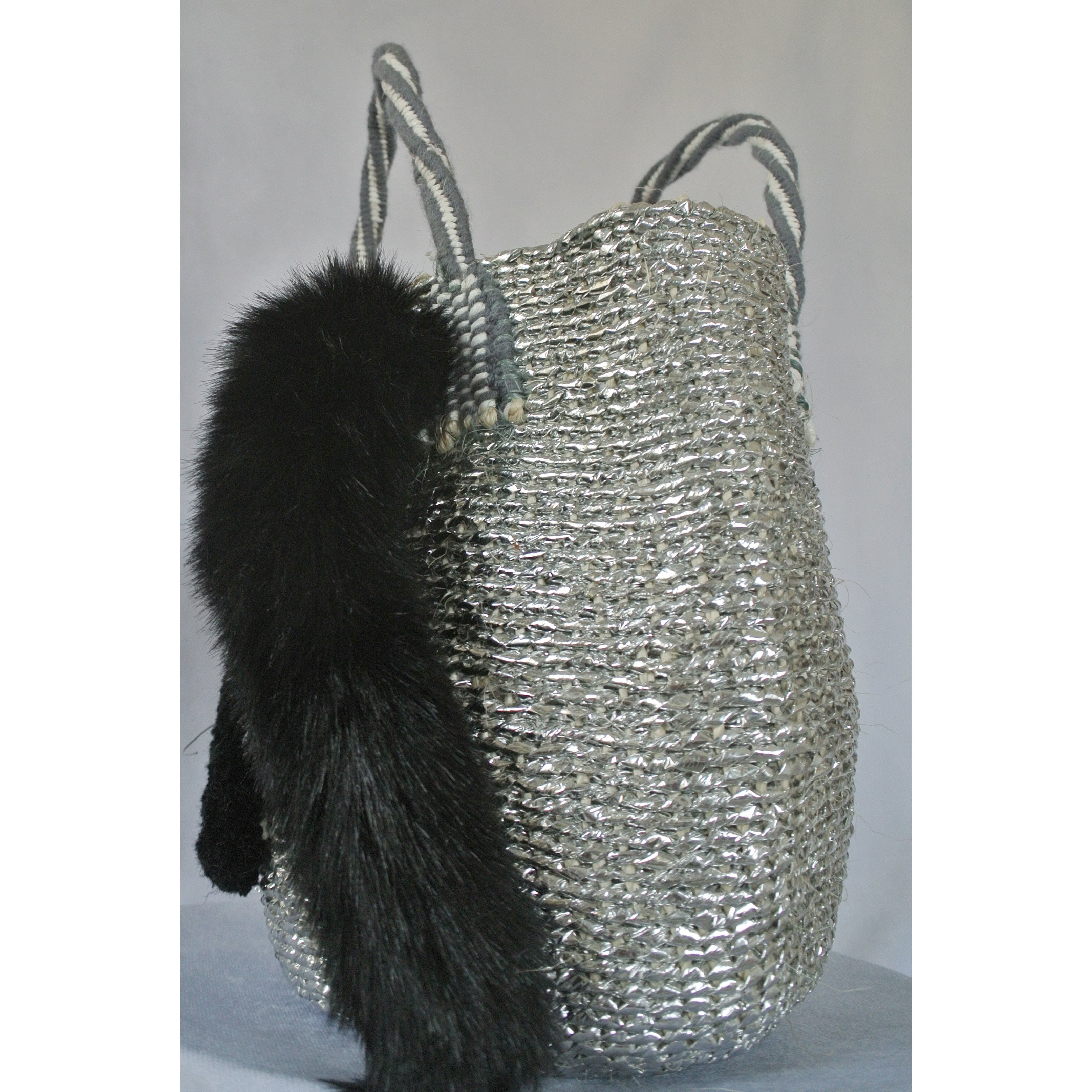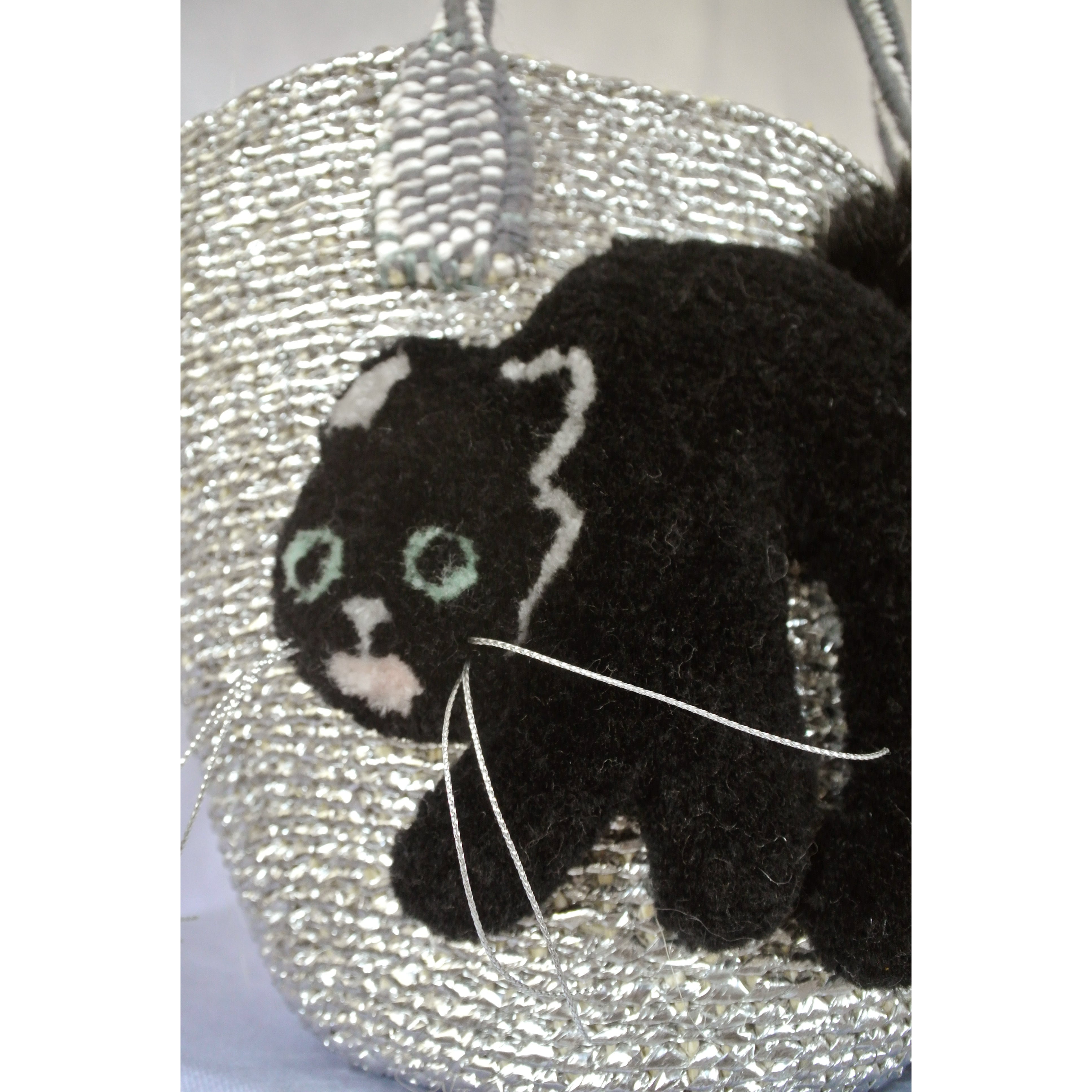モコモコねこカゴバッグ サイザル×シルバー Ver. ブラック