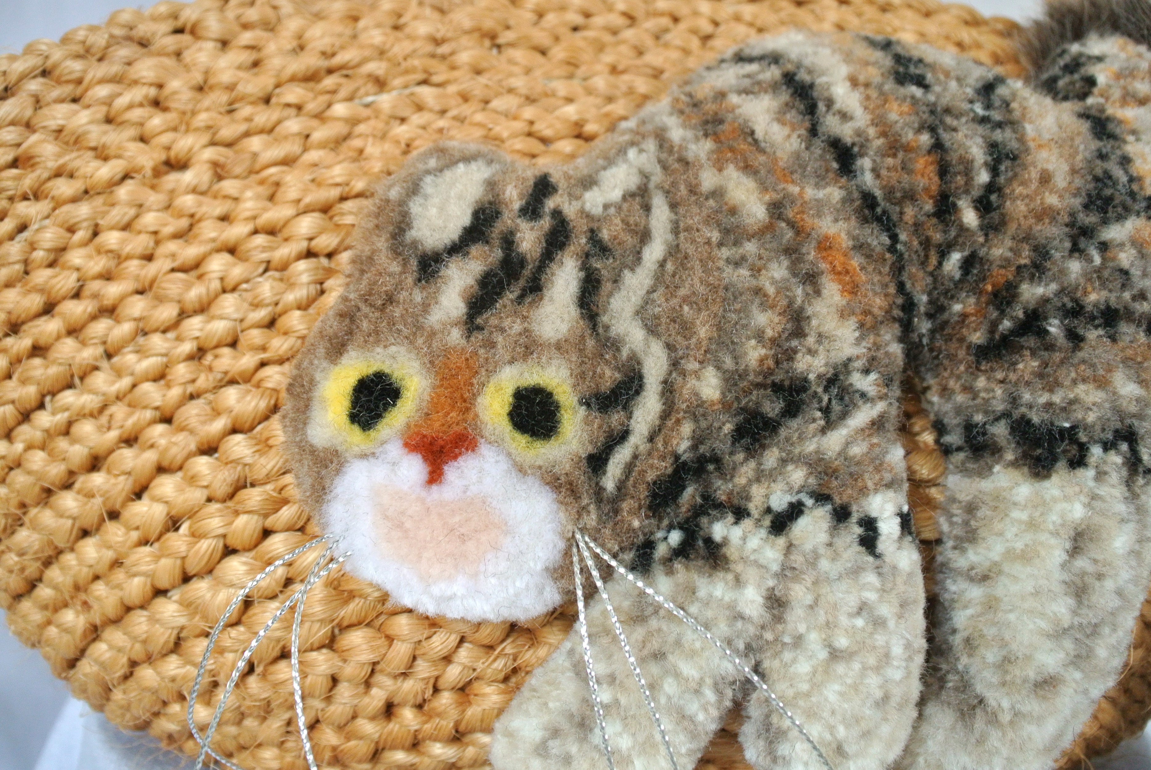 ※手作りのため、一点ずつ個体差があります。毛糸刺繍の起毛の状況によって、猫ちゃんの表情が、画像とやや異なる場合がございます旨ご了承ください。