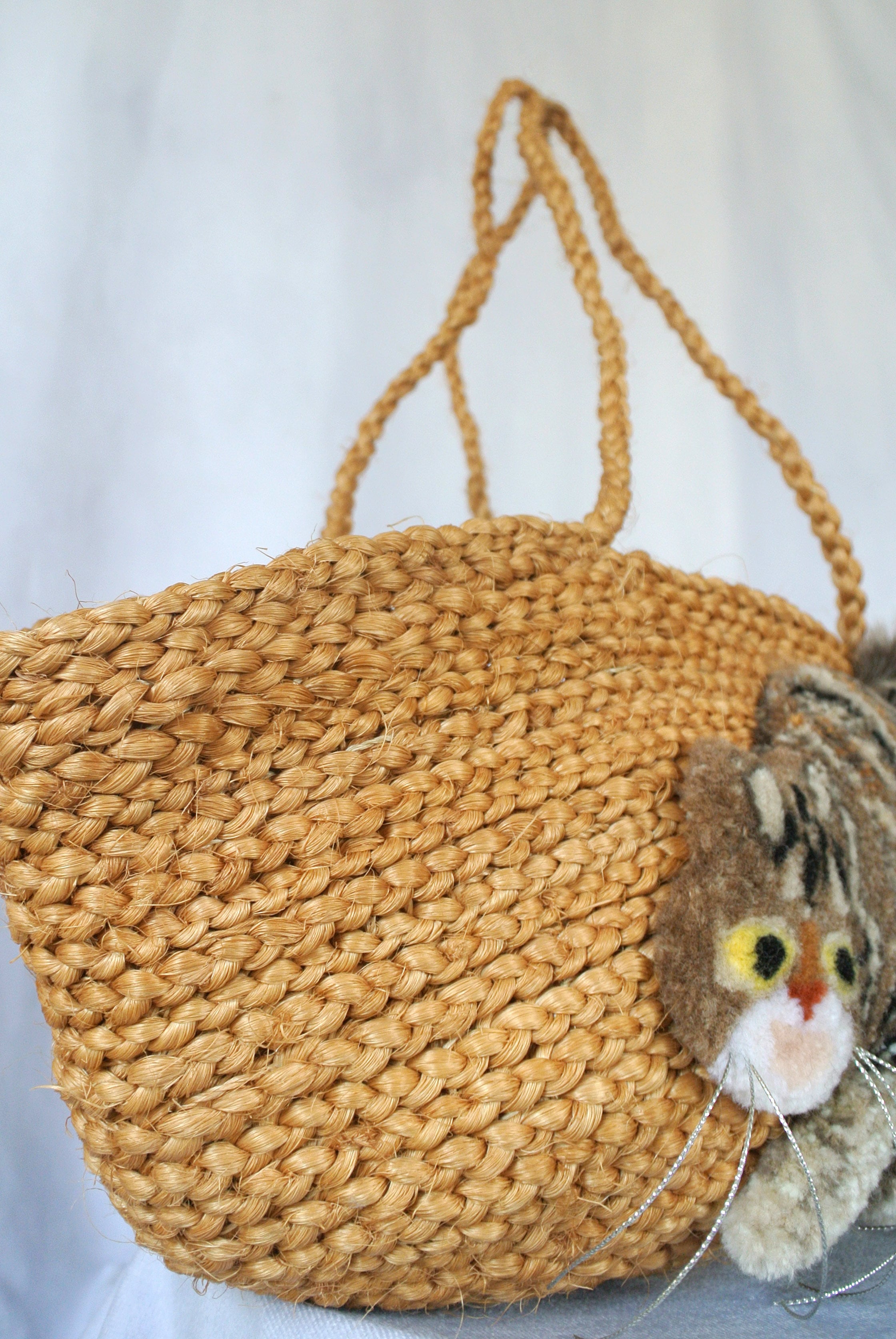 モコモコねこカゴバッグ サイザルショルダーVer. キジトラ