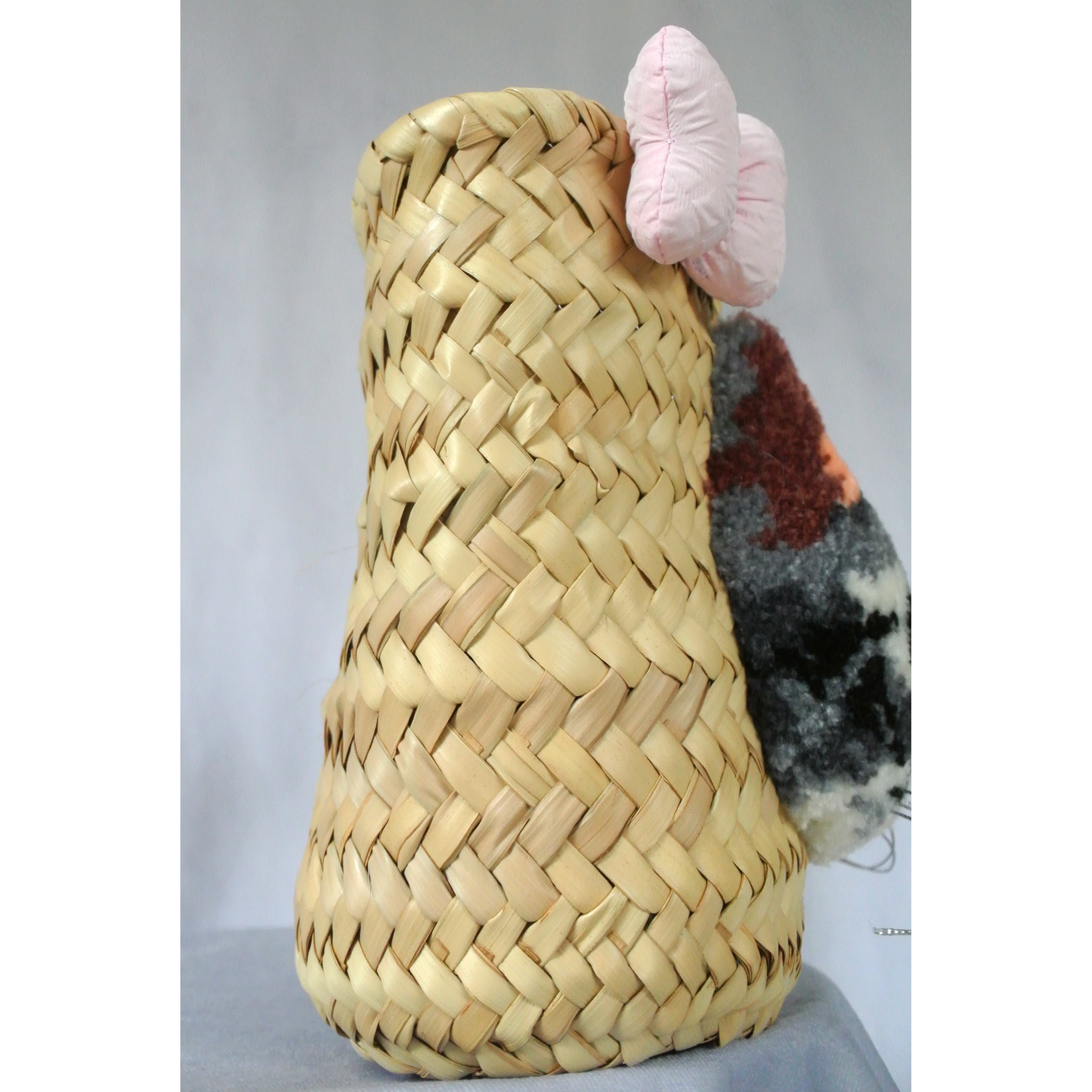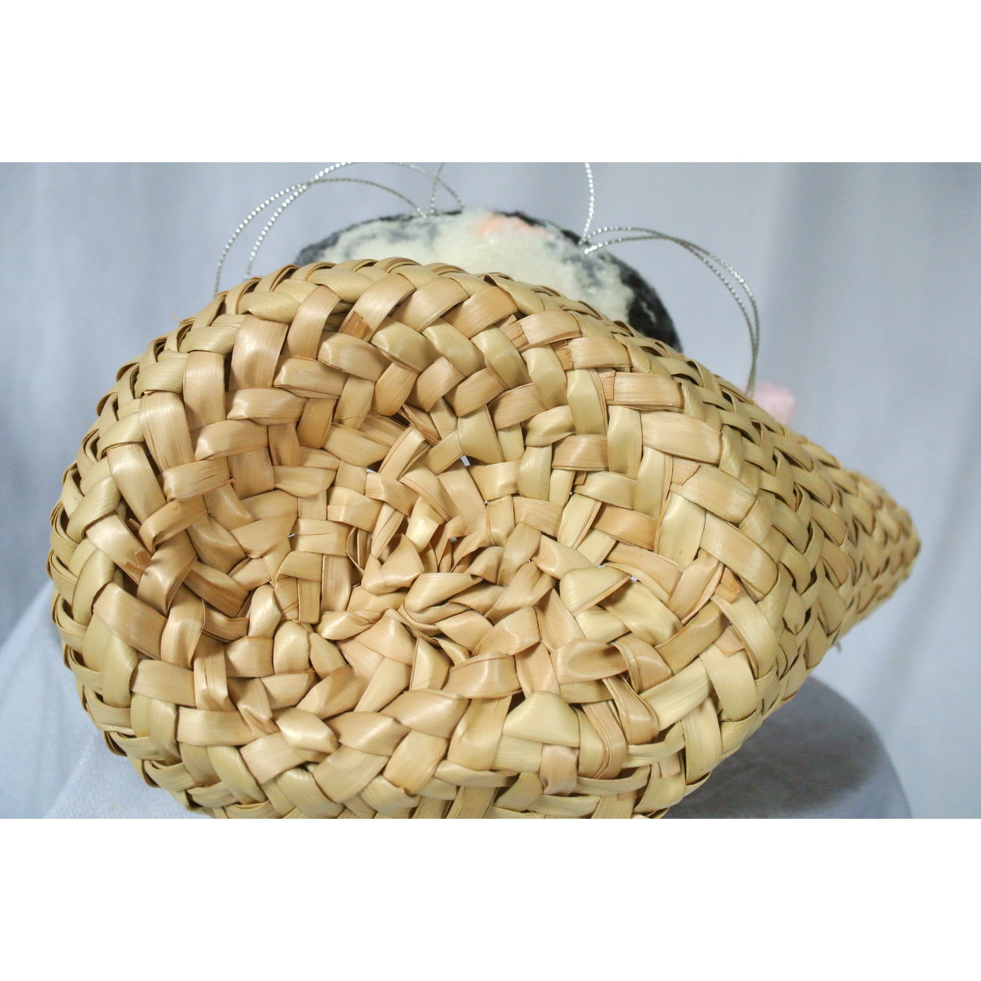 かご:パーム椰子 ネコ部分:アクリル毛糸 巾着:コットン