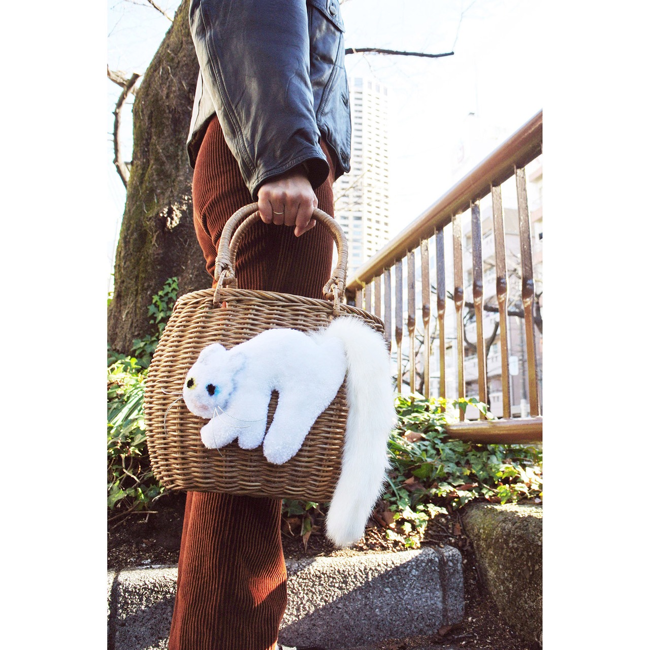 モコモコねこカゴバッグ ラタンVer. ホワイト