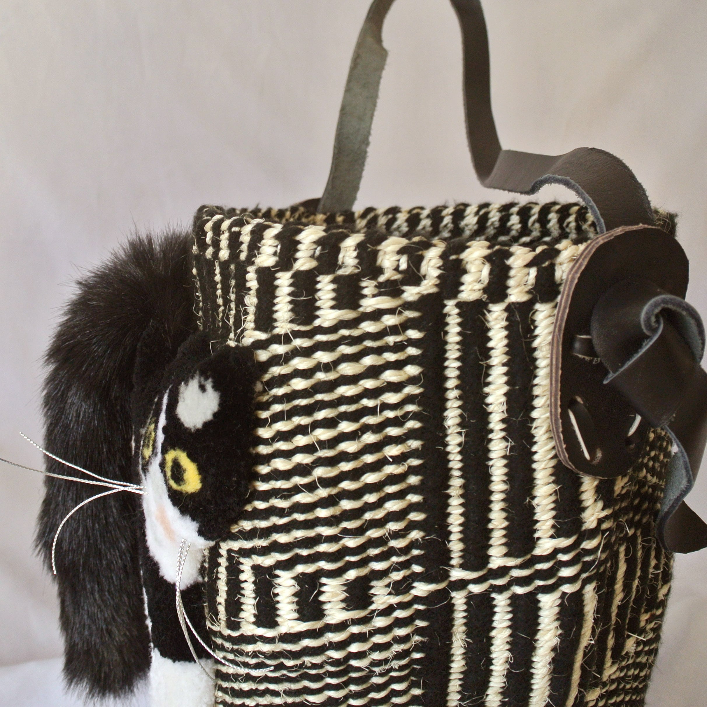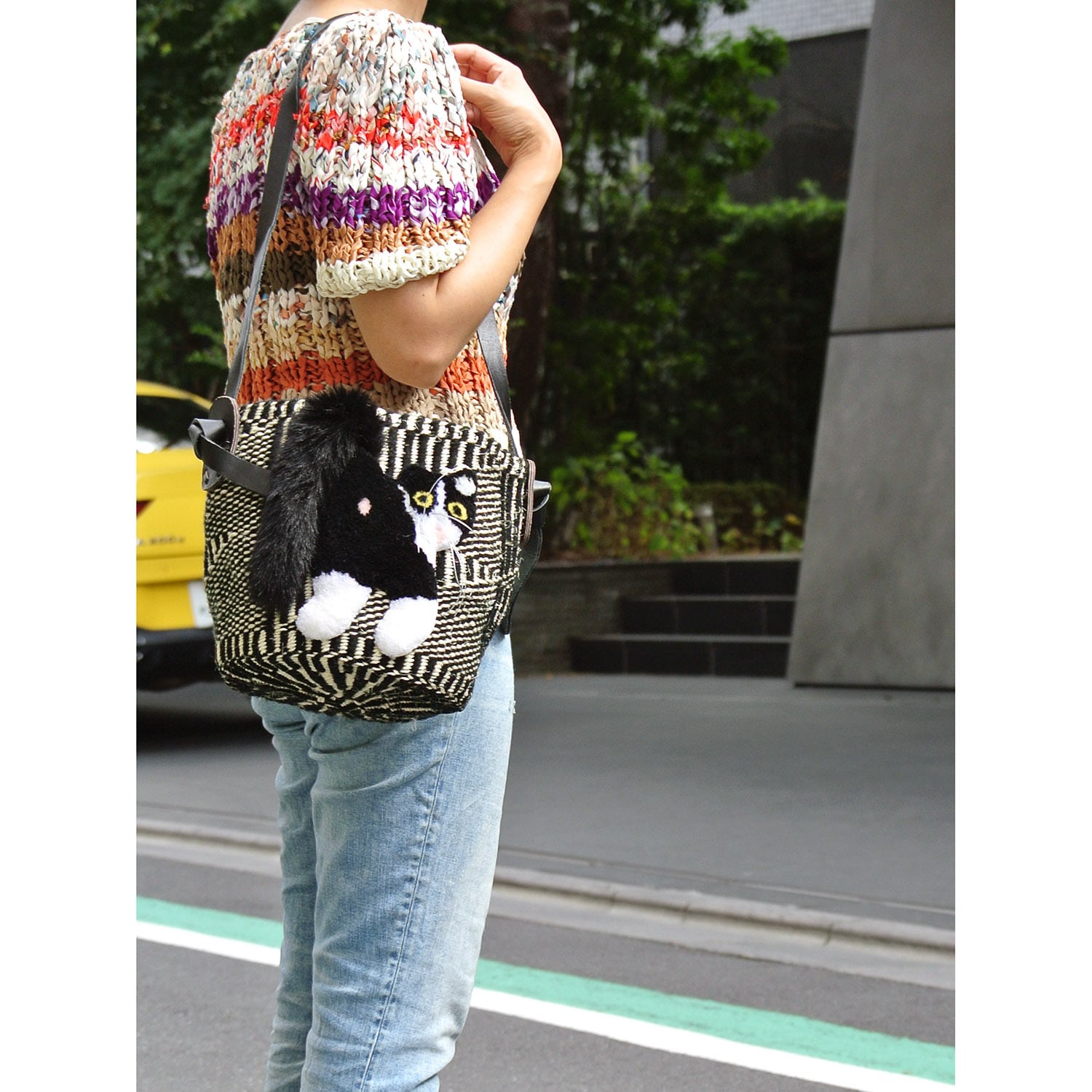 モコモコねこカゴ サイザルショルダーVer. OSHIRI-CHAN ハチワレ