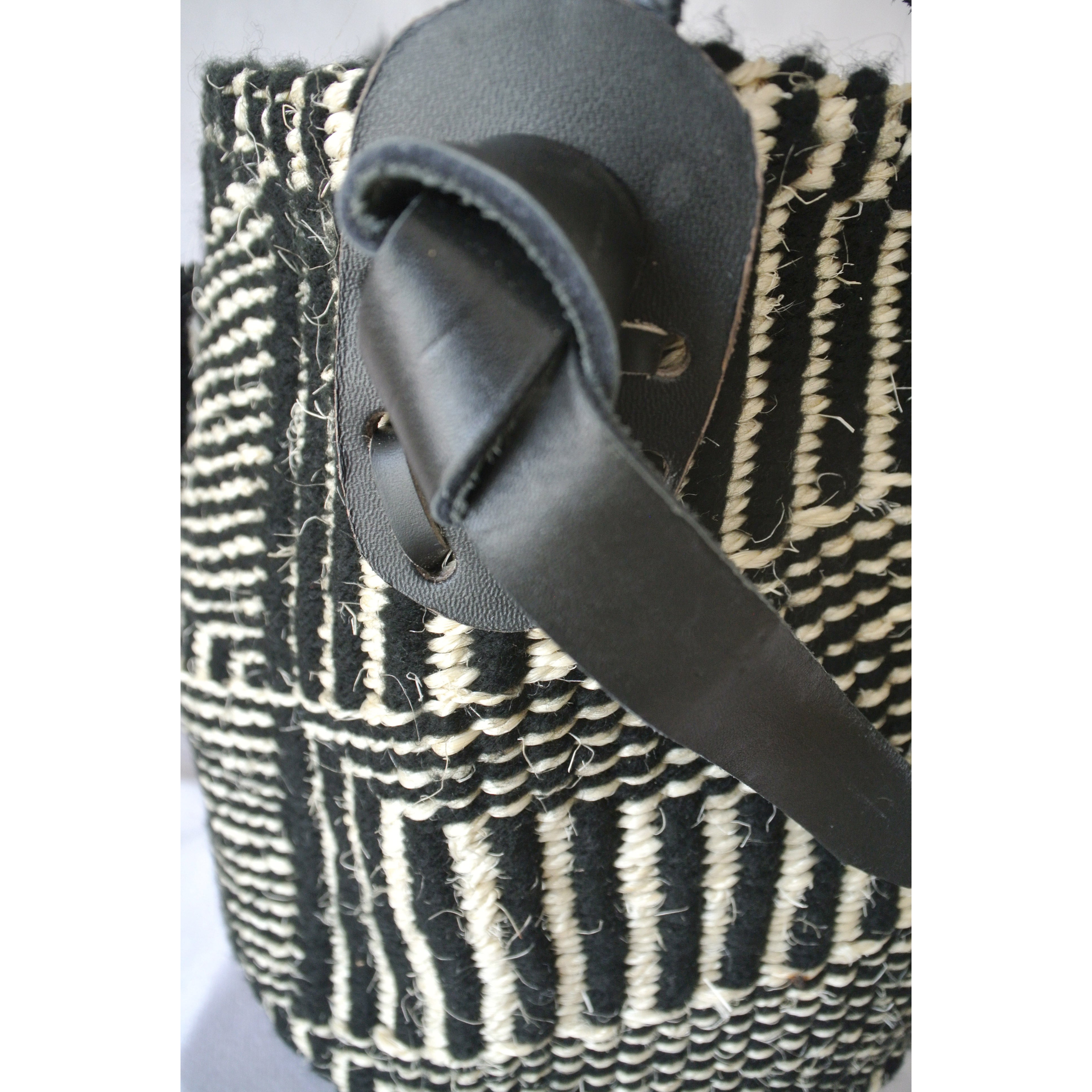 サイザル麻とアクリル毛糸を引き揃え、アフリカ特有の美しい柄に編み込まれたボディを使用しています。ショルダーバッグとして使える定番の人気のバッグです。